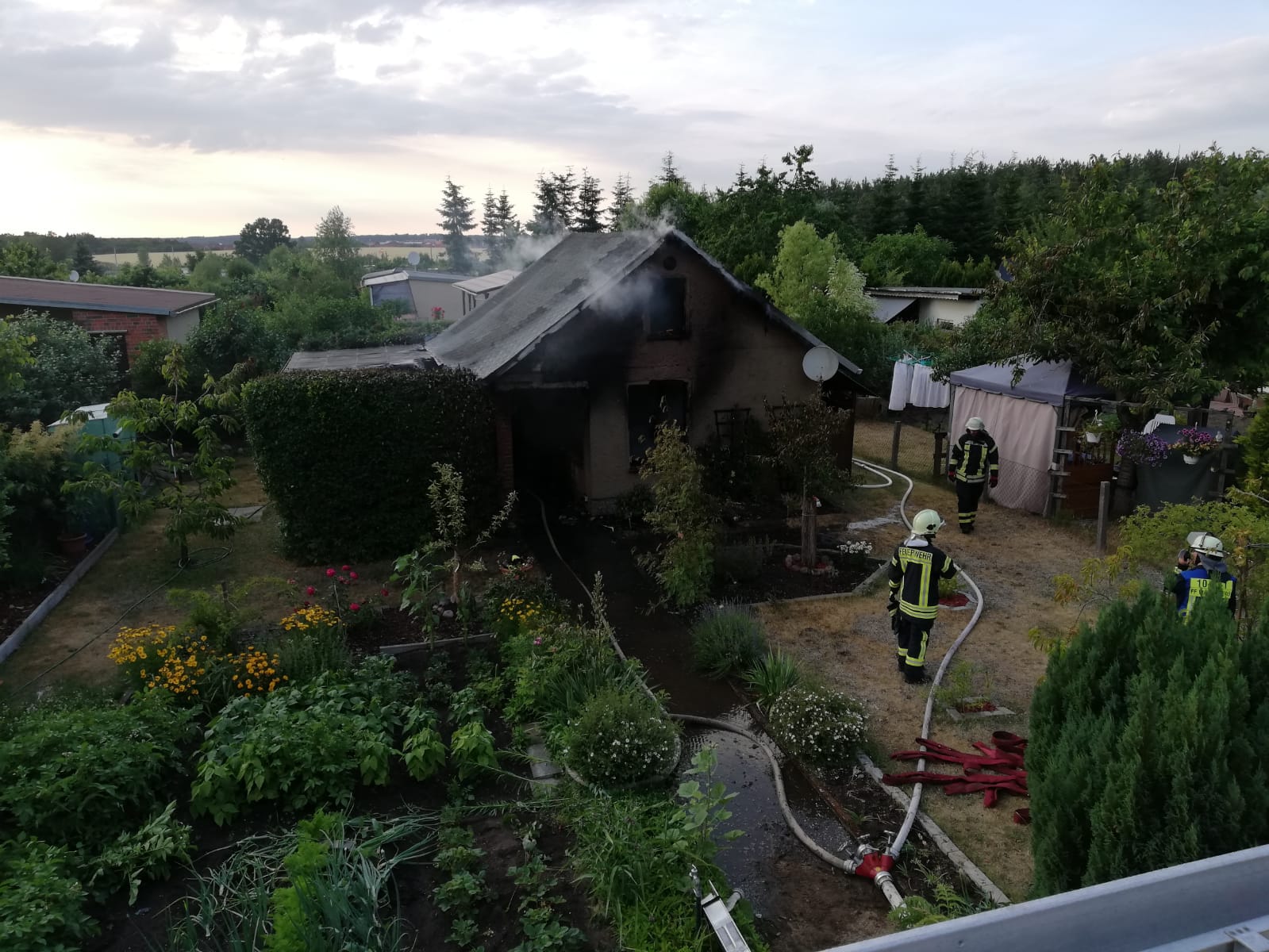 Im Kargower Weg in Waren ist heute Abend ein Gartenhäuschen komplett ausgebrannt. Warens Feuerwehrleute – insgesamt 36 Kameraden – waren zwar schnell vor Ort, konnten das Häuschen aber nicht mehr retten.
