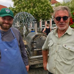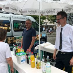 Er gehörte zu einer Reihe von Anbietern, die heute bei der Aktion „Gemeinsam tafeln“ auf dem Neuen Markt dabei waren.