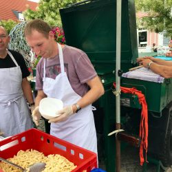 Erstmals dabei: Der Jagdverband Müritz, der gemeinsam mit „Fischers Küche“ und dem Müritzeum gebackenes Wildschwein und Rosmarinkartoffeln im Angebot hatte. Innerhalb kürzerster Zeit waren Grill und Pfanne leer.