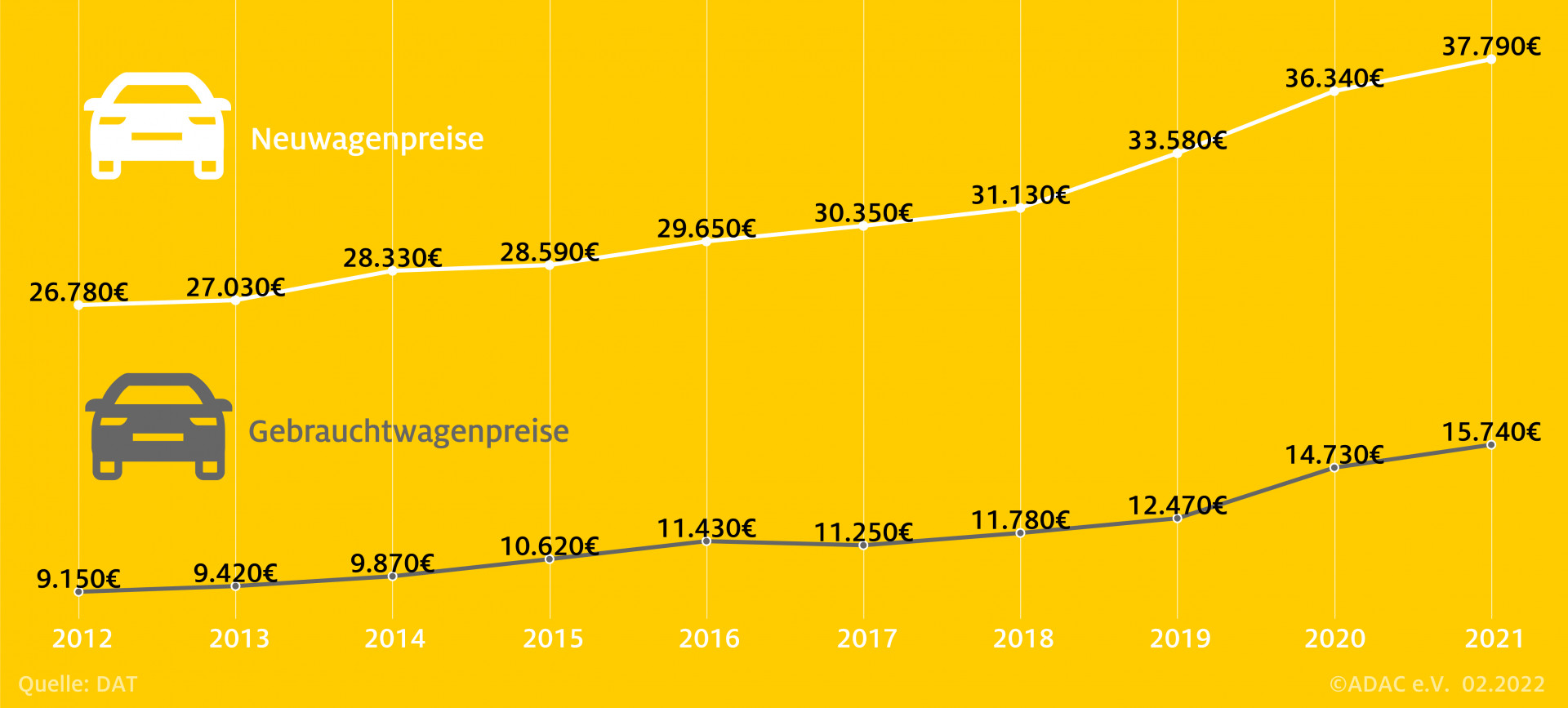 Der aktuelle Report der Deutschen Automobil Treuhand (DAT) zeigt: Die Preise für Gebrauchtwagen haben stark zugelegt, seit 2019 um satte 25 Prozent. Kostete ein gebrauchtes Autos 2019 im Durchschnitt noch 12.470 Euro, mussten Käufer im vergangenen Jahr dafür 15.740 Euro aufbringen. Der ADAC hat Tipps, wie man trotz der angespannten Lage beim Gebrauchtwagenkauf Geld sparen kann.