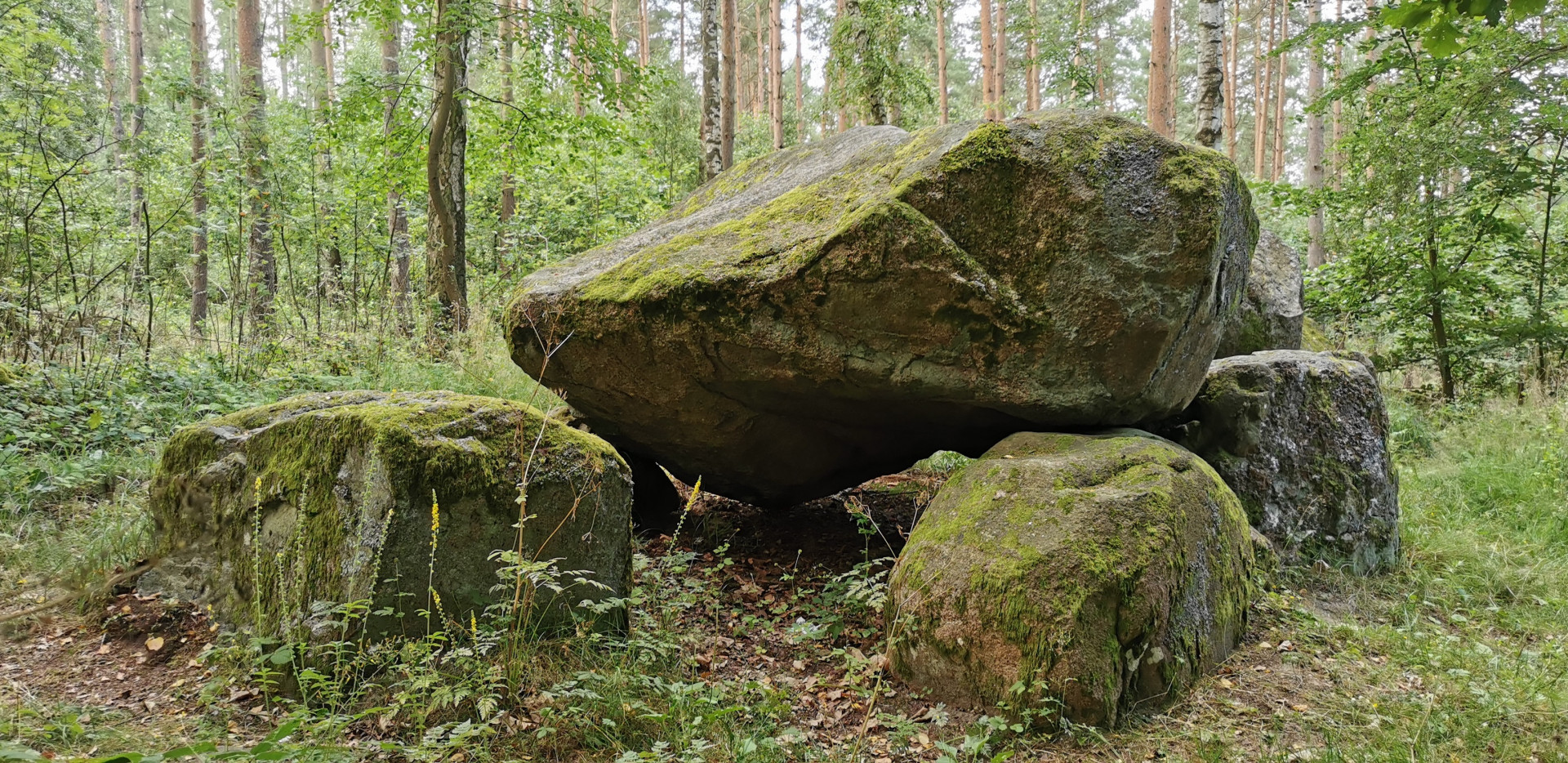 Das Foto zeigt das Großsteingrab am Drewitzer See, das aus der Jungsteinzeit und rund 5000 Jahre alt ist.