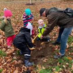 Kastanien duften und man kann sie sogar essen? Für die Mädchen und Jungen der Kita am Tiefwarensee war das neu. Sie haben gestern gemeinsam mit Mitgliedern des Jagdverbandes Müritz auf dem Mühlenberg fünf Esskastanien gepflanzt und erfuhren nebenher viel Wissenswertes über diesen Baum.