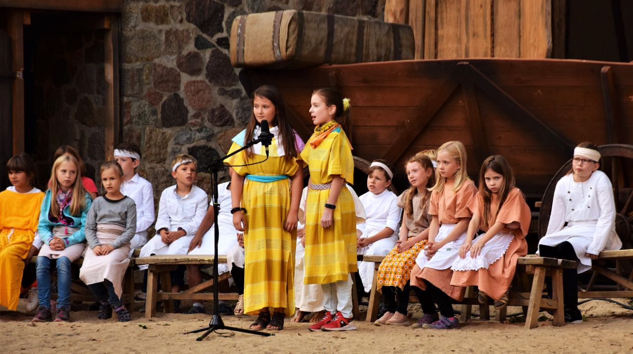 Das lag vor allem auch an dem Chor der Arche-Schule, dirigiert von der wie immer stark engagierten Kantorin Christiane Drese von der Kirche Sankt Georgen. Mit ihrem eindrucksvollen Singspiel „Mirjam oder Ein Binsenkorb Hoffnung“ eroberten die Mädchen und Jungen schnell die Herzen der Zuschauer. Das Stück erzählt die Geschichte des Hebräer-Jungen Mose im alten Ägypten. Der damalige Pharao soll befohlen haben, alle kleinen Knaben der Israeliten zu töten. Moses Mutter legte ihr Baby jedoch in einen Binsenkorb und versteckte ihn schließlich im Schilf des mächtigen Flusses.