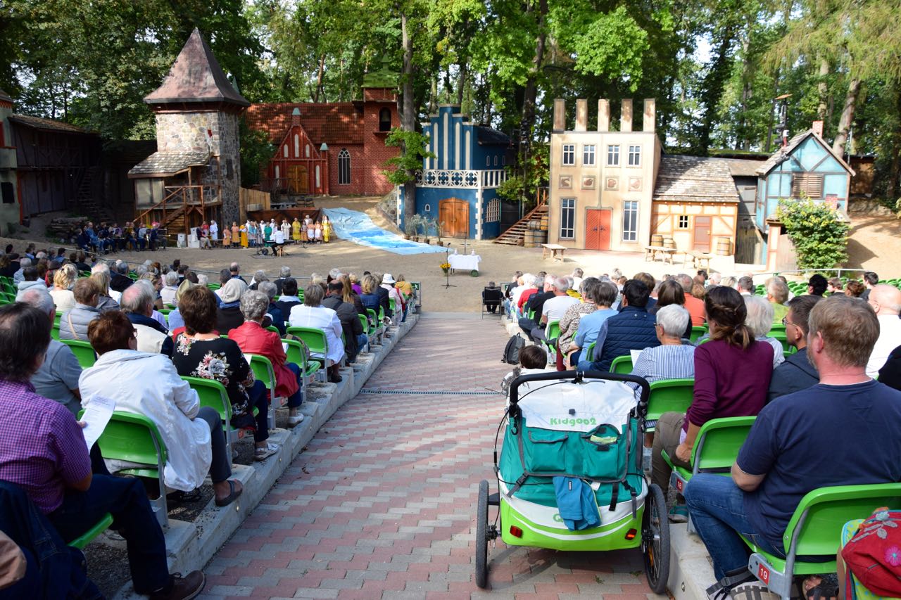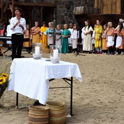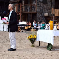 Pastor Marcus-Johannes Wenzel von der Gemeinde Sankt Marien sprach zum Abschluss von einem erneut gelungenen Fest. Er bedankte sich bei den vielen ehrenamtlichen Helfern, die das Treffen erst möglich gemacht haben. Zum Beispiel etliche Frauen, die leckere Kuchen beisteuerten. Einen besonderen Dank ernteten aber Nils Düwell, der Intendant der „Müritz-Saga“, und seine Familie und Unterstützer, die die technische und gastronomische Logistik der Freilichtbühne zur Verfügung stellten und an den Tresen selbst fleißig mitwirkten.