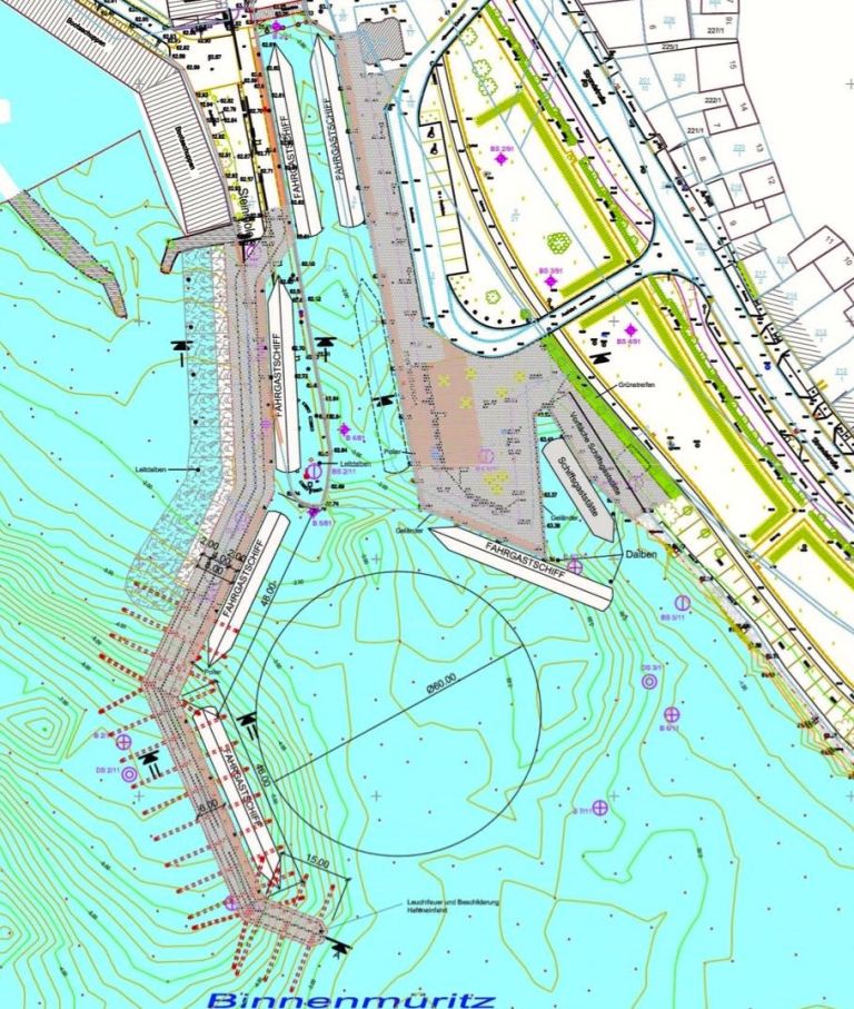Ziel der Maßnahme: Die Fahrgastschiffe sollen zum größten Teil aus dem Hafen verschwinden und bekommen an der Steinmole moderne Ver-und Entsorgungseinrichtungen. Platz ist für sechs Dauerliegeplätze. Lediglich drei Anlegestellen sollen im Hafen bleiben. Aber auch nur fürs Ein- und Aussteigen.