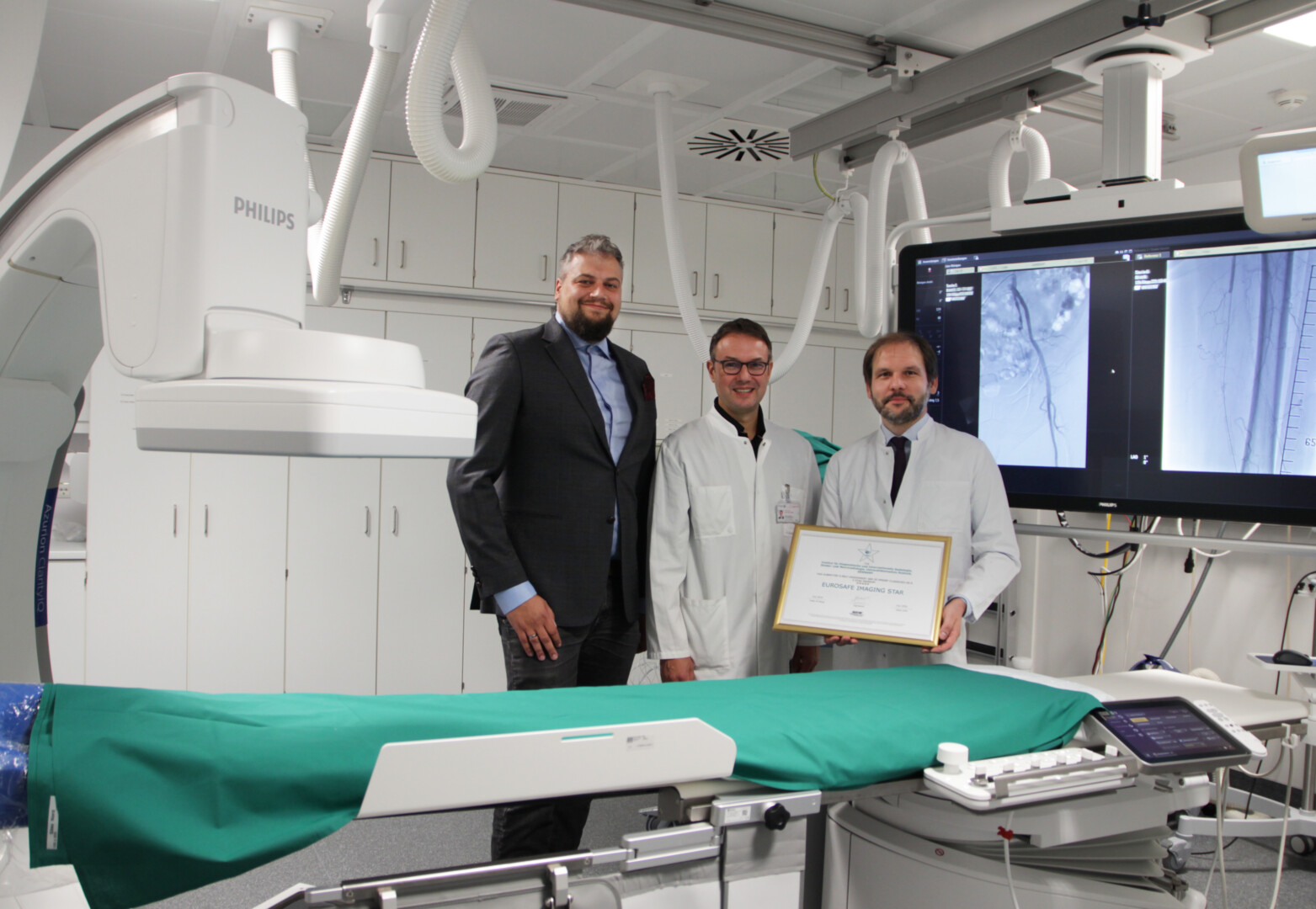 „Die Auszeichnung ist eine Bestätigung für das Engagement und die harte Arbeit des gesamten Teams“, ergänzt Weber. Im Strahlenschutz steht Teamarbeit an erster Stelle. Ärzte, Medizinische Technologen der Radiologie und Medizinphysiker arbeiten Hand in Hand, um das ganze Potenzial der modernen Geräte auszuschöpfen. Als Leiter des Bereichs Medizinphysik und Methoden arbeitet Dr. Chris Lappe daran, diagnostische Verfahren weiter zu verbessern und Strahlung zu verringern. „Neben etablierten Verfahren erforschen wir experimentelle Methoden, die später in der Klinik Anwendung finden und unseren Patienten zugutekommen“, erklärt Lappe.