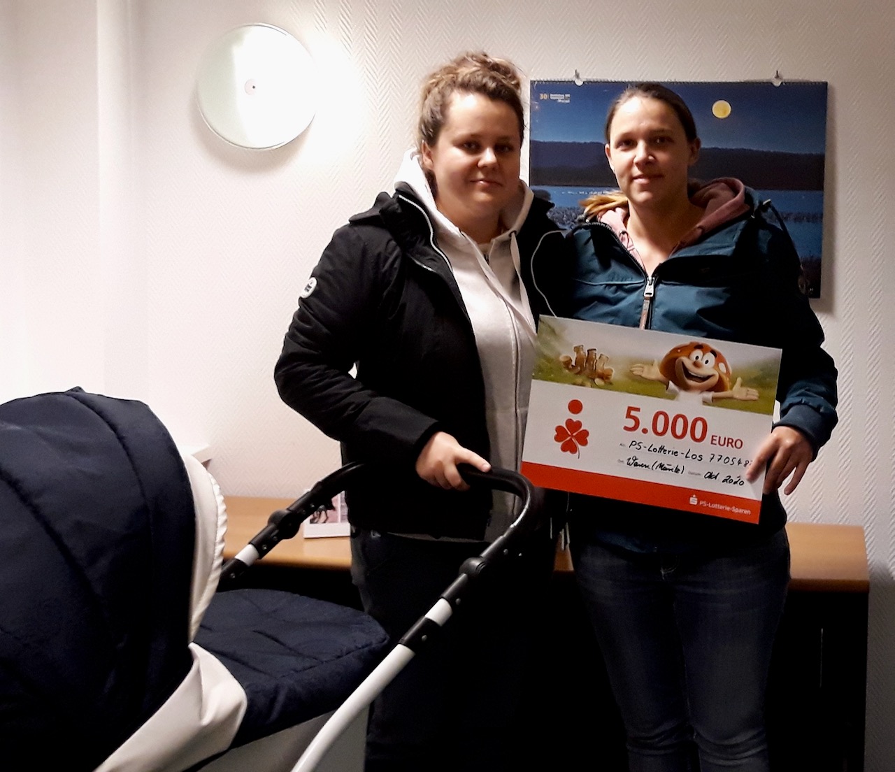 „Wir wollten doch nur ein wenig sparen“ so die PS- Gewinnerinnen Jenny und Christin Ondrusch. Vielleicht schwang beim Kauf des Loses aber auch die Hoffnung mit, zu den glücklichen Gewinnern zu gehören. Und tatsächlich: Martin Fäcknitz, Leiter der Hauptstelle in Waren (Müritz) konnte den jungen Frauen kurz vor dem Weltspartag einen symbolischen Scheck mit einer Gewinnsumme von 5.000 Euro überreichen. „Wofür das Geld verwendet werden soll, müssen wir erst noch genau überlegen. Ganz sicher kann sich unser Kleiner über etwas Schönes freuen.“