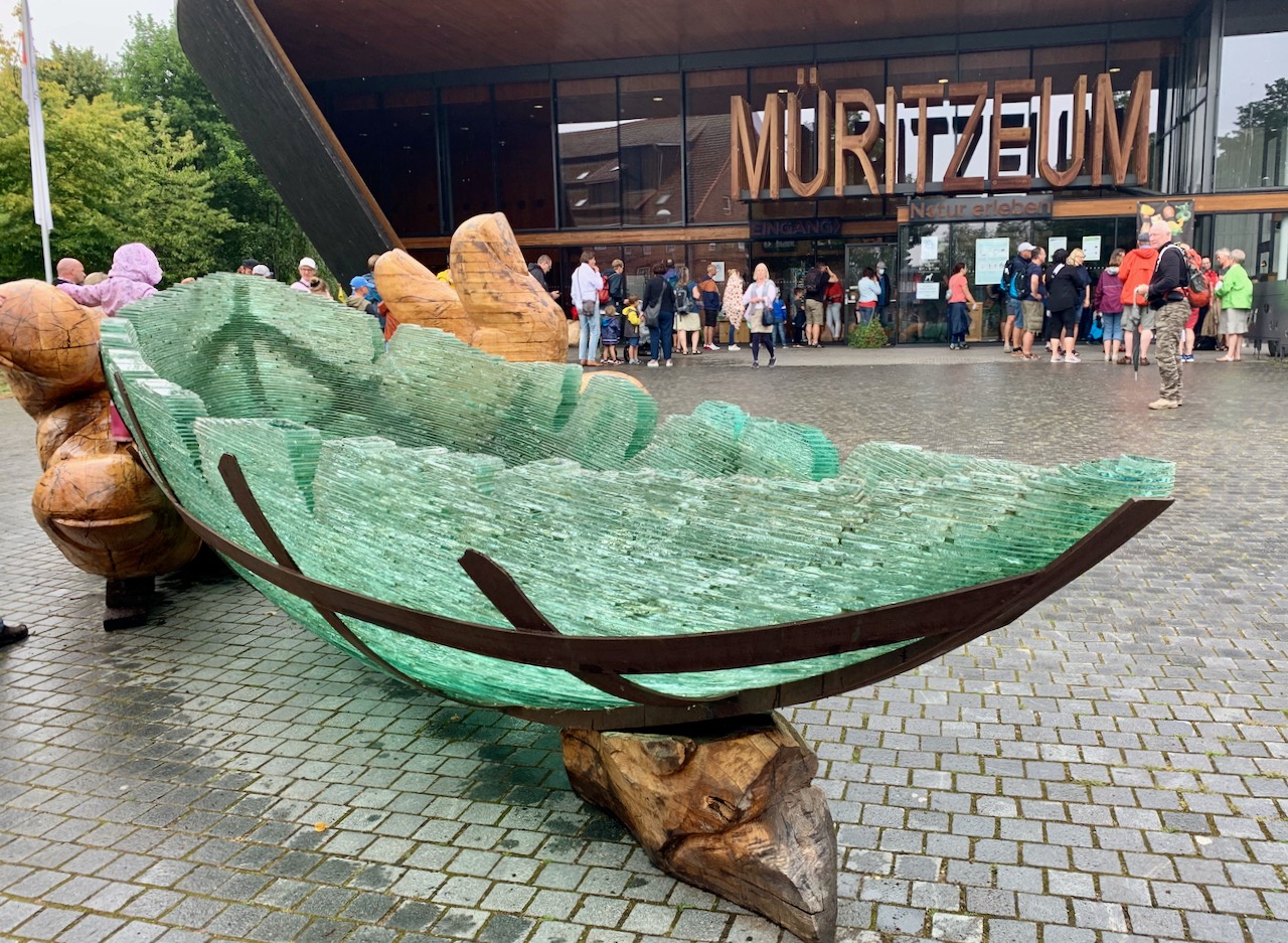 Sie ist ein Hingucker auf dem Vorplatz des Müritzeums, und sie zeigt sehr eindrucksvoll die Zerbrechlichkeit der Natur und unsere Verantwortung für die Natur: Auf seiner Reise durch Mecklenburg-Vorpommern ist das Kunstwerk „Glasarche 3“ jetzt am Müritz-Nationalpark vor Anker gegangen. Sehr zur Freude der vielen, vielen Besucher, die aufgrund des Regenwetters heute wieder Schlange standen. Bis zum 4. Oktober kann die „Glasarche“ in Waren besichtigt werden.