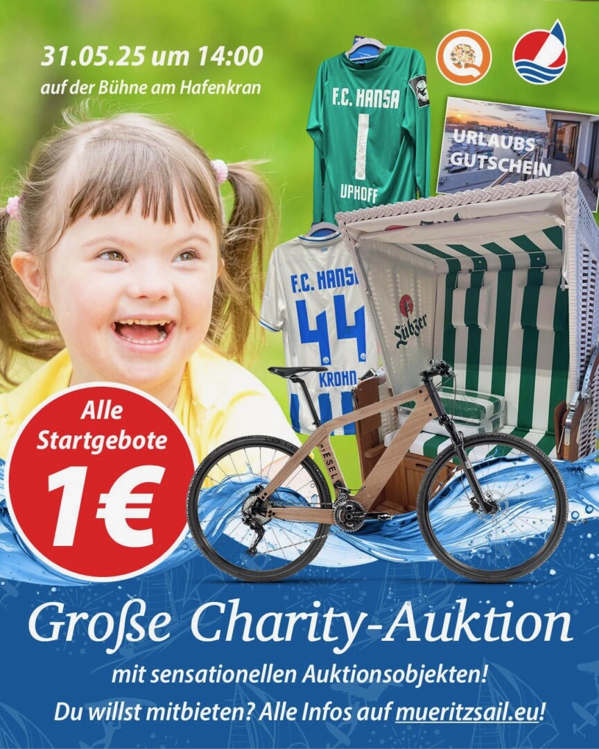 Wichtig: Wer bei den beiden Auktionen mit steigern möchte, wird gebeten, sich zuvor Bieterkarten im Fahrradhaus Hinrichs am Seeufer zu holen. Dort kann man sich die Auktionsobjekte übrigens auch schon mal anschauen. Wer es nicht abwarten kann, finden die Preise auch auf der Homepage der Sail unter www.mueritzsail.eu. Dort steht natürlich auch das komplette Programm des maritimen Ereignisses.