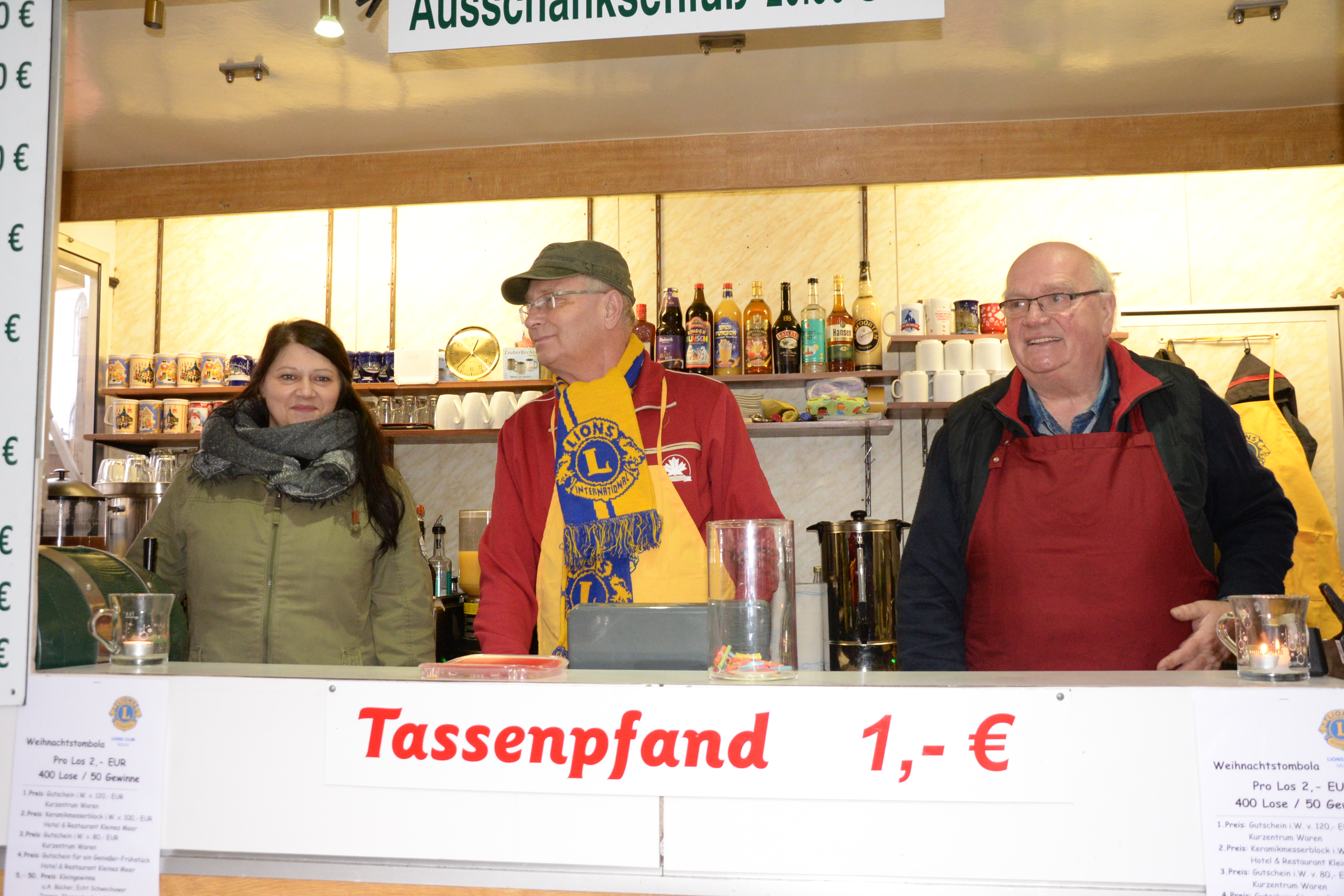 Dieser außergewöhnliche Einsatz der Mitglieder des Lionsclub Müritz hat sich gelohnt: Beim Glühweinverkauf am Sonnabend am Warener Glühweinstand und der zusätzlichen Tombola mit vielen Preisen sind rund 1300 Euro zusammengekommen.