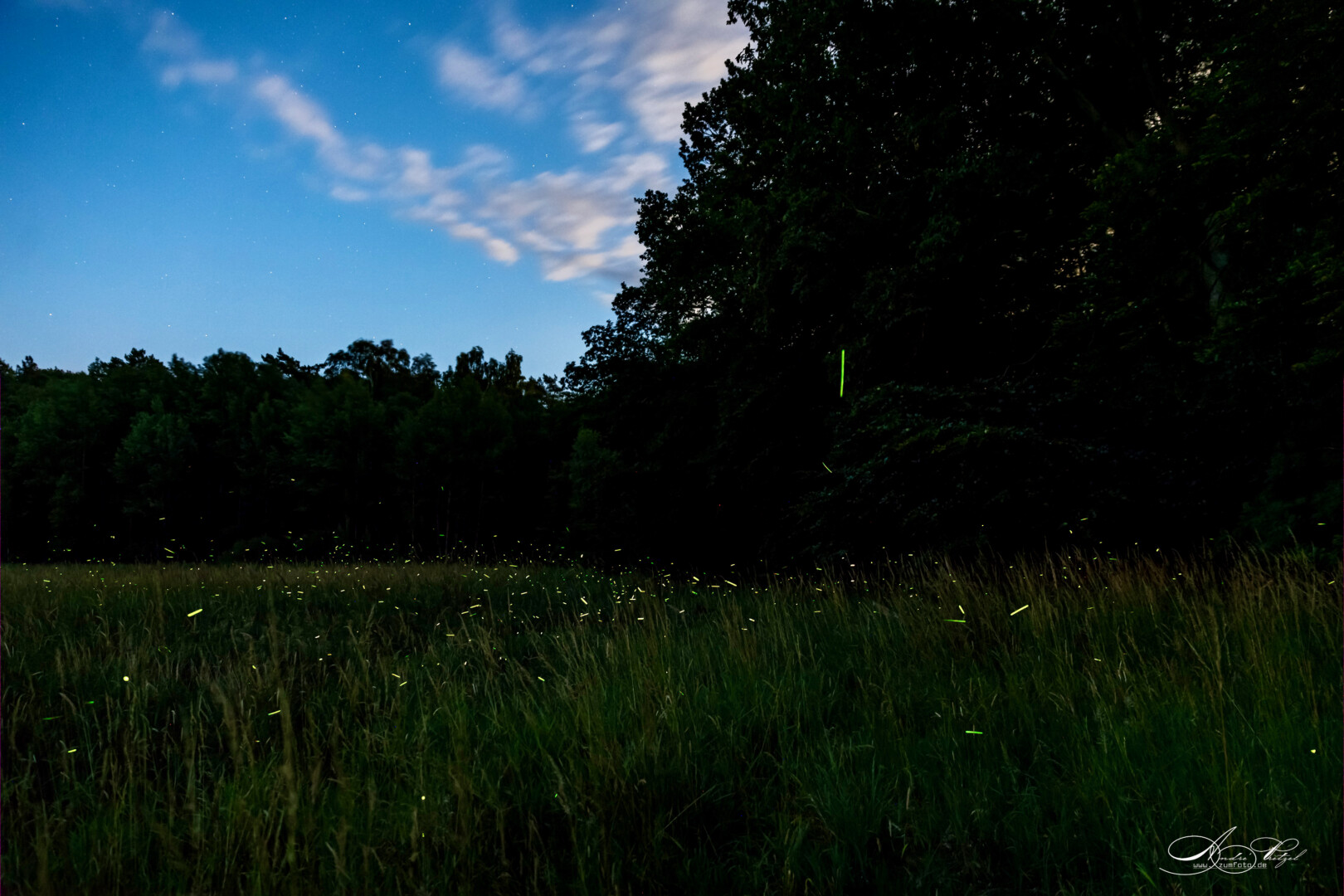Haben die Glühwürmchen auch schon umherschwirren sehen? Es sind zwar ob des teilweise heftigen Windes und der mäßigen Temperaturen gerade keine guten Bedingungen, doch der Warener Fotograf André Pretzel hat die Glühwürmchen trotzdem einfangen können.