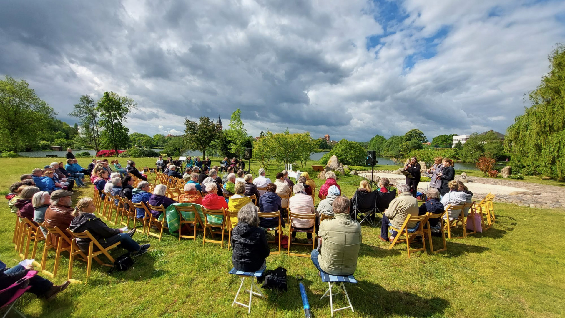 Einen besonderen Gottesdienst erleben die Besucher gerade im wunderschönen Garten des Lebenshilfswerkes am Tiefwarensee.