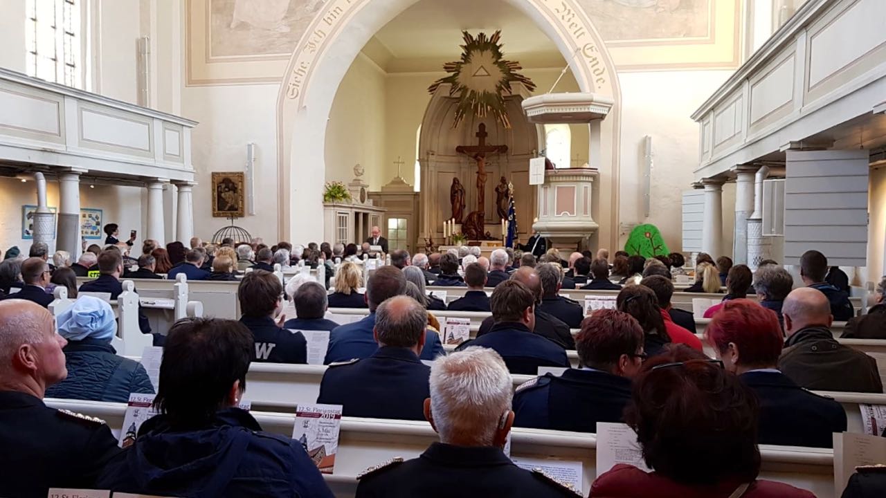 Sirenenklänge in der Kirche gibt’s auch nicht so oft: Volles Haus heute der Warener St. Marienkirche: Dort fand zum St. Florianstag ein Ökumenischer Festgottesdienst statt – eingeläutet mit Sirenengeheul.