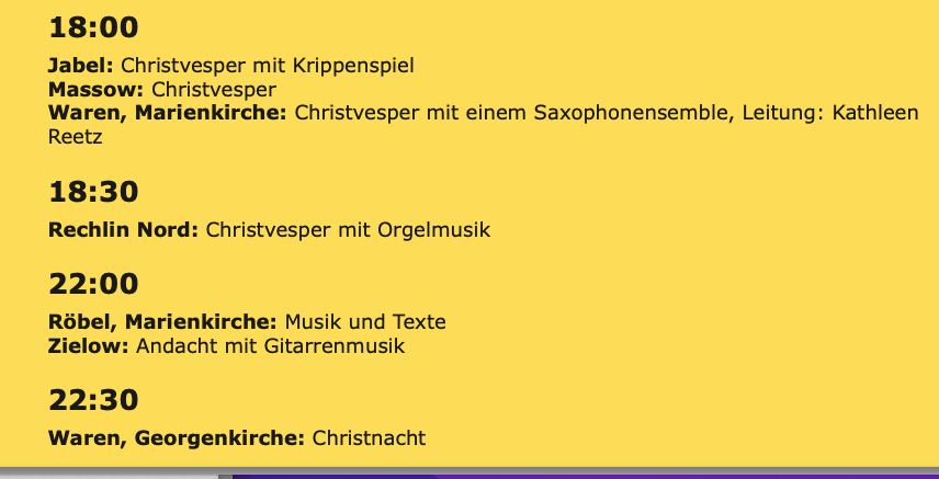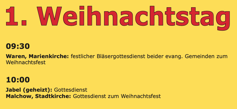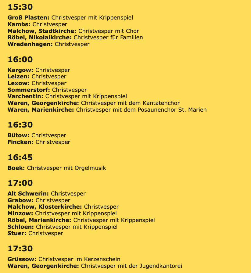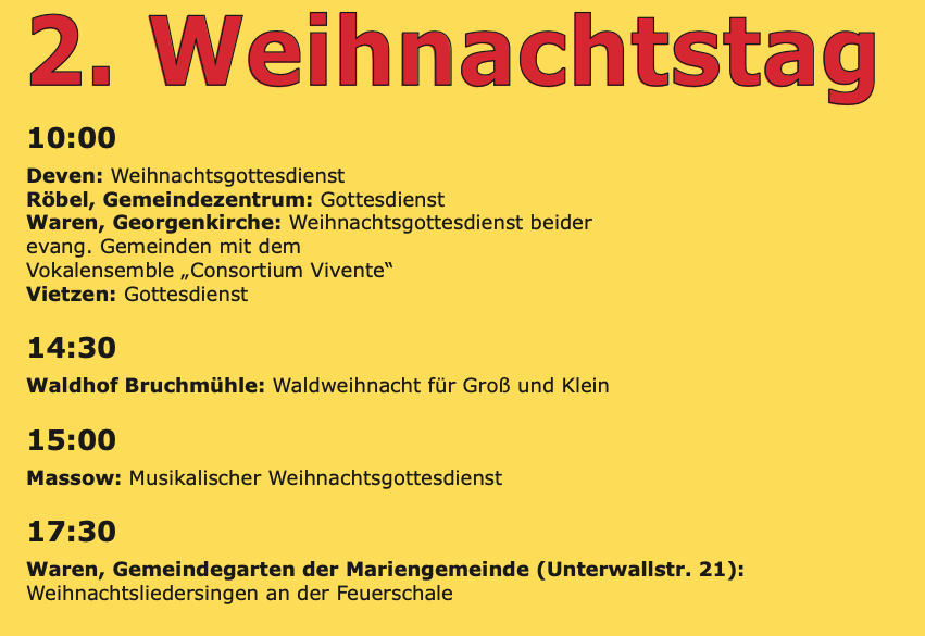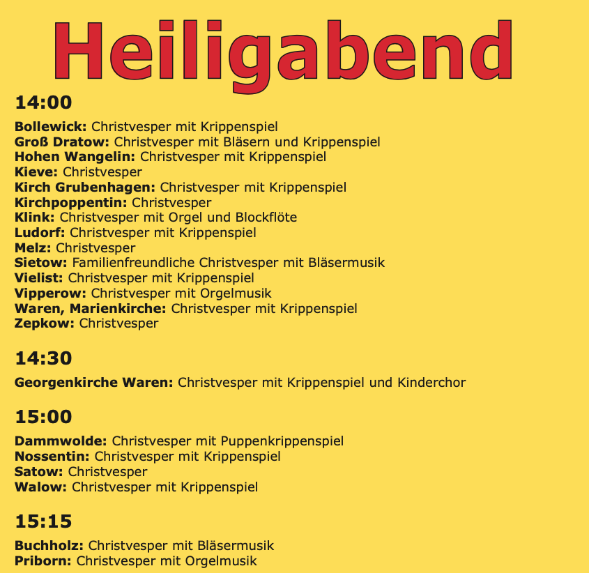 Christvespern, Krippenspiele, Gottesdienste mit Bläsermusik – die Kirchengemeinden an der Müritz bieten heute und an den beiden bevorstehenden Weihnachtsfeiertages viele Möglichkeiten, weihnachtliche Momente in den Gotteshäusern zu erleben.