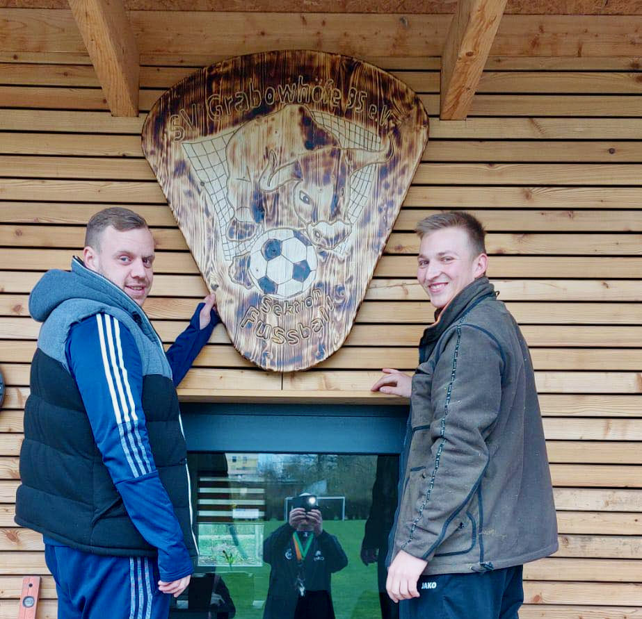 „Stellvertretend für alle Helfer und Unterstützer möchte ich drei Namen nennen: Klaus-Dieter Rink, Thomas Evers und Ralf Michelus. Das Vereinslogo der Sektion Fußball wurde von zwei Spielern – Florian und Chris – gestaltet und uns für den Eingangsbereich zur Verfügung gestellt“, so Rekarda Disteler.