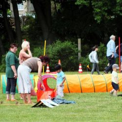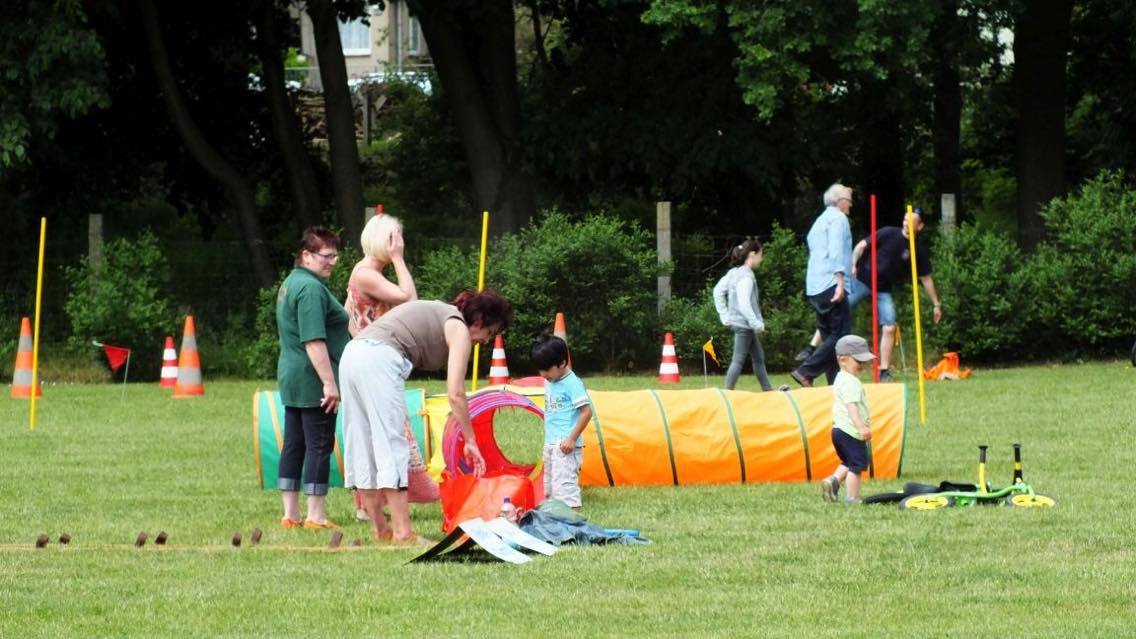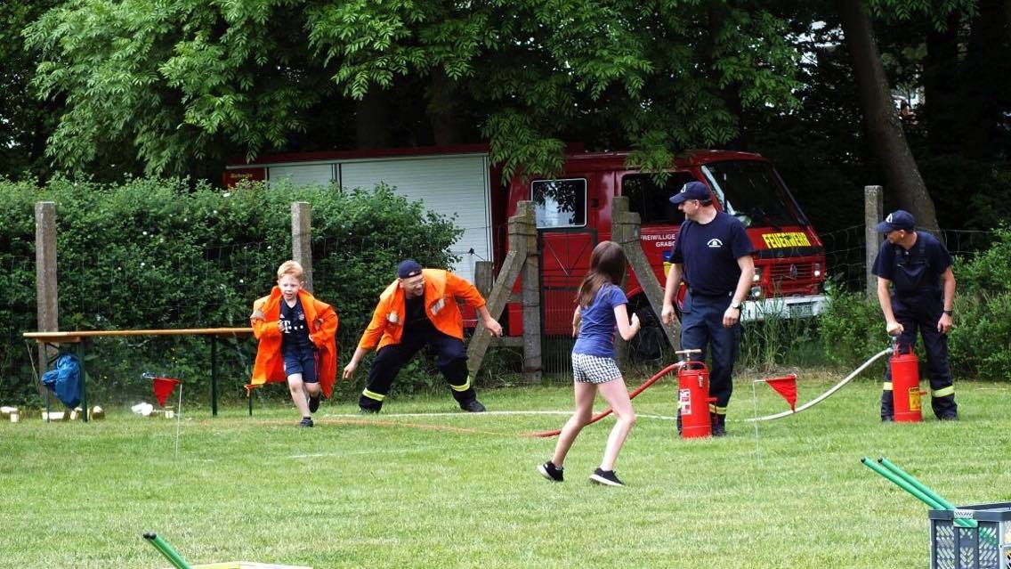 Neben Fußball und Beach-Volleyball gab es Wettkämpfe wie den Parkourlauf, Dreikampf, Löschangriffe, Laufrad-Rennen und Kriechtunnel-Krabbeln. Die Kinder beendeten das Sportfest mit einer sportlichen Schatzsuche.
