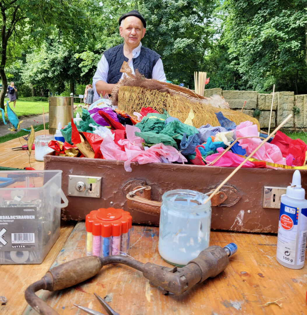 Attraktionen für die ganze Familie rund um die antiken Helden. Die Künstler Stephan Rätsch und Katharina Sell laden zur Kreativwerkstatt ein. Bogenschießen, eine Hüpfburg sowie viele Bastel – und Mitmachaktionen warten auf die jungen Besucher. Mit dabei sind zahlreiche Handwerksstände zum Stöbern.