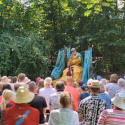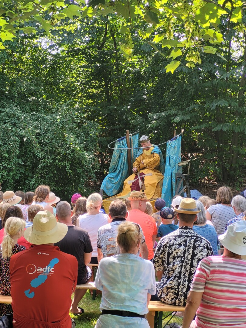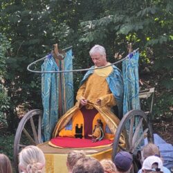 Gleich zu Beginn begeisterte die „Göttersprechstunde“ junge und erwachsene Besucher mit unterhaltsamen Einblicken in die griechische Mythologie. Für Staunen und Geschmunzel sorgte auch wieder der Auftritt von Uwe Albrecht: Mit seinem Puppenspiel „Der gestiefelte Kater“ brachte er Kinderaugen zum Leuchten, und als überlebensgroße Stelzenfigur „Göttin Hera“ wurde er zum wandelnden Fotomotiv und Publikumsliebling.