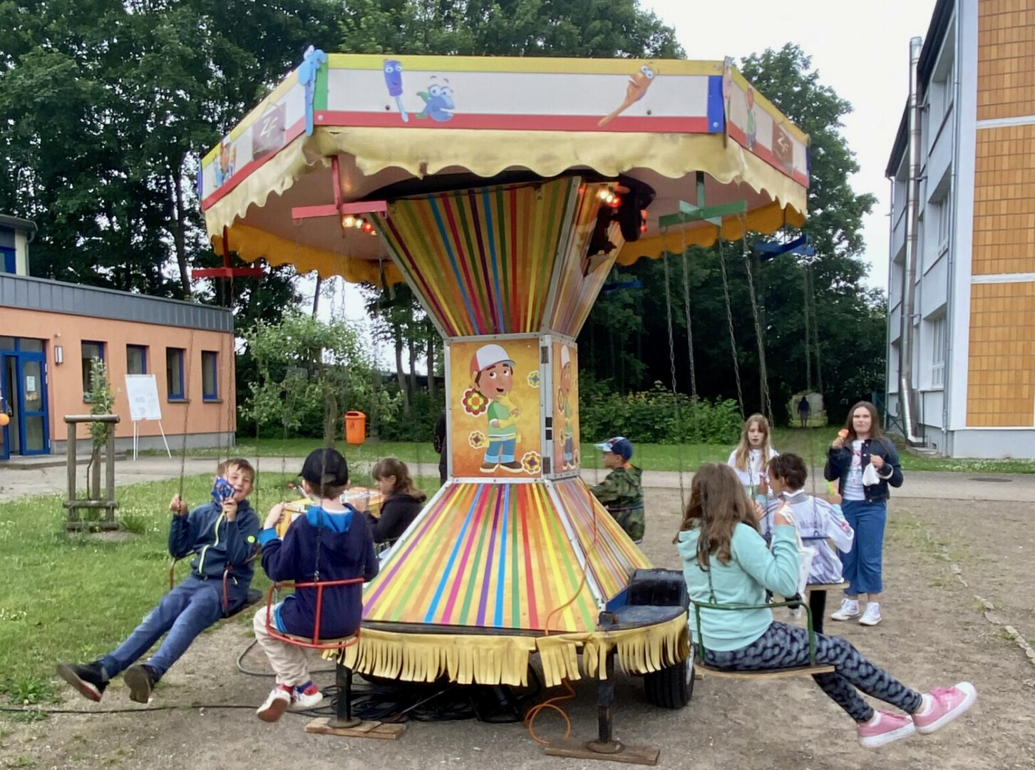 Der Montag dieser Woche war für die Mädchen und Jungen der Grundschule Groß Plasten ein ganz besonders aufregender Tag. Unterricht gab es nicht. Zusammen mit dem Förderverein der Grundschule wurden ganz tolle Überraschungen anlässlich des Kindertages geplant. Der Tag startete mit der Begrüßung und unserem Schulsong. Dann konnten sich die Kinder auf dem Hof frei bewegen und die verschiedenen Stationen besuchen. Es gab neben einem Kettenkarussell noch Bubble-Soccer, einen großen Tischkicker, ein Glücksrad, Torwand- und Bogenschießen, Dosen werfen und verrückte Fahrräder.