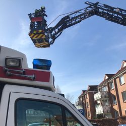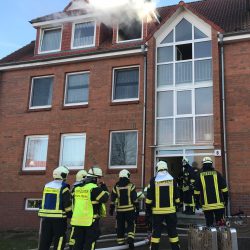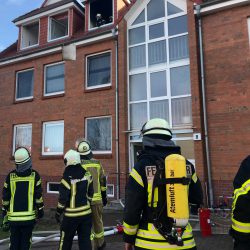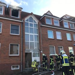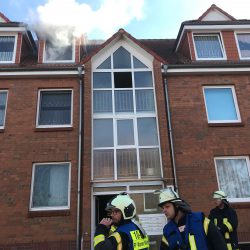 Schreck am Mittag: Aus einer Dachgeschoss-Wohnung am Warener Torfbruch zieht dicker Qualm. In der Küche ist ein Brand ausgebrochen. Die genaue Ursache ist noch unklar, derzeit wird vermutet, dass auf dem Herd etwas liegen gelassen wurde.