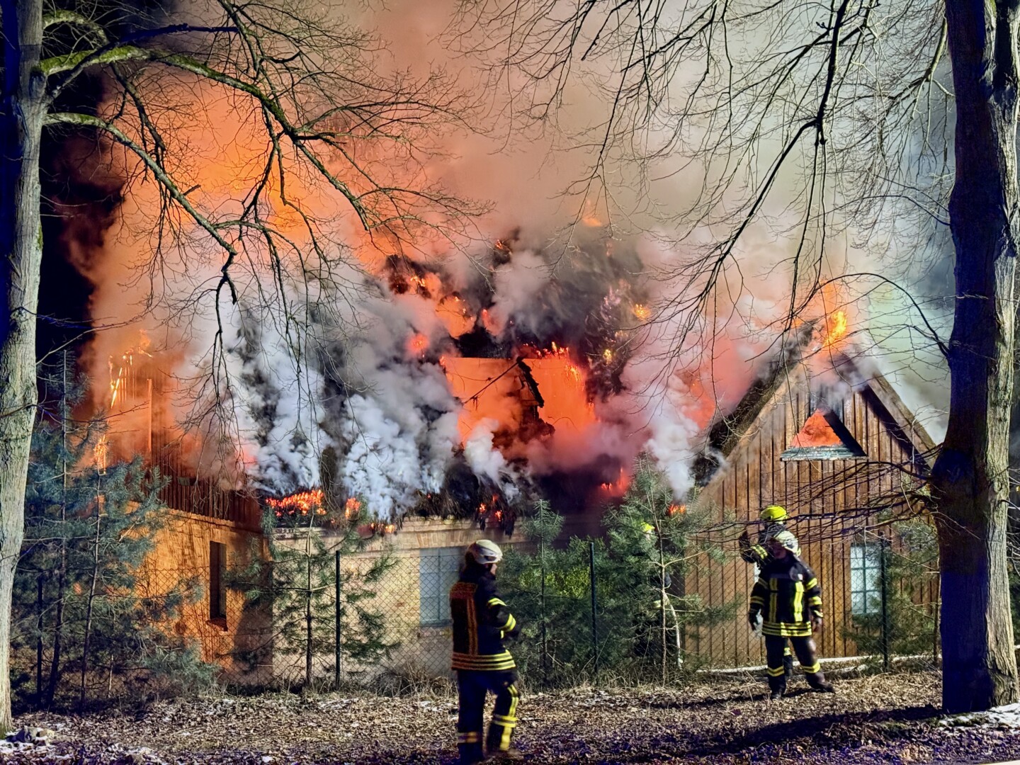 Im Einsatz waren am Sonntagabend mehr als 100 Feuerwehrleute aus der Umgebung. Die Polizei gibt den Schaden mit rund 650 000 Euro an, ob das reicht, ist derzeit fraglich. Die Bewohner, ein Seniorenehepaar, konnten durch den Sohn rechtzeitig in Sicherheit gebracht werden. Bei den Angehörigen können die Betroffenen jetzt auch erst einmal wohnen.
