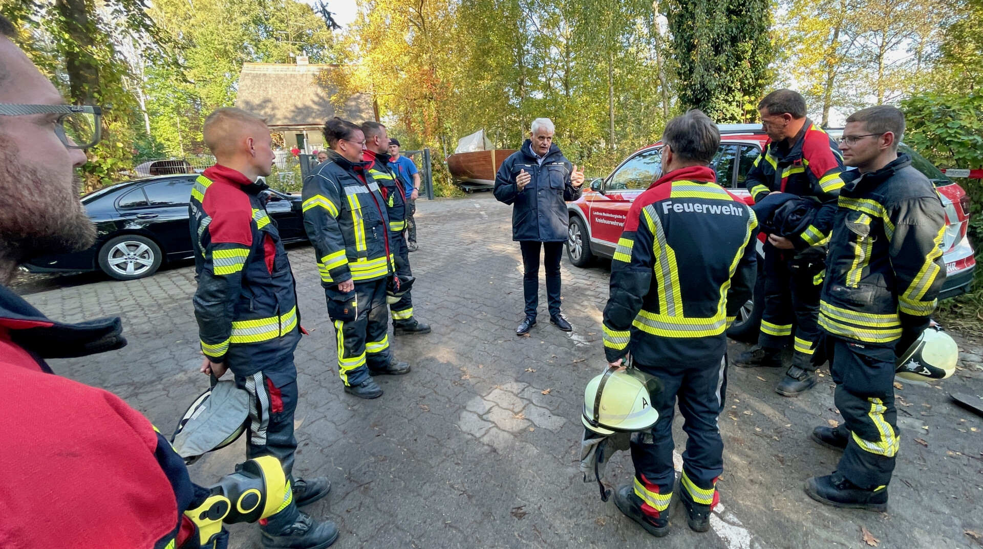 Trotz ihres Schocks wollen sie unbedingt etwas los werden: „Die Leute der Feuerwehr sind einfach der Hammer. Bei ihrer Arbeit, aber auch, wenn’s um Menschlichkeit geht. Sie haben uns sehr gut betreut“, berichtet Norman. Das sieht auch der Staatssekretär aus dem Innenministerium Wolfgang Schmülling so. Er bedankte sich gestern wie Thomas Müller als stellvertretender Landrat, Bürgermeister Norbert Möller und Nadine Julitz vor Ort bei den Kameraden für ihren Einsatz. Immerhin waren die Retter von etwa 11.30 Uhr am Vormittag bis gegen 2 Uhr in der letzten Nacht vor Ort. Dem verletzten Feuerwehrmann, der bei einem Teileinsturz verschüttet und verletzt wurde, geht es nach Aussage von Wehrführer Reimond Kamrath schon besser. Nach momentanem Kenntnisstand erlitt er keine schwerwiegenden Verletzungen, befindet sich aber noch im Müritz-Klinikum.