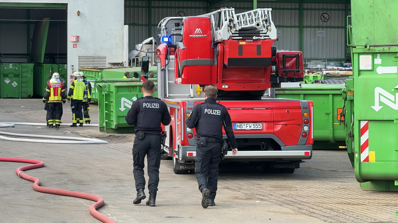 Ein Abfallcontainer auf dem Gelände eines Entsorgungsbetriebs in Trollenhagen hat heute Vormittag für einen Großeinsatz gesorgt. Das Feuer war in einem etwa 22 Kubikmeter großen Container mit Farbresten ausgebrochen.