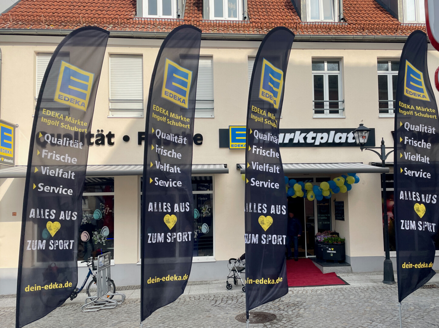 Zwei Monate für den kompletten Umbau – das war sportlich. Meinen sowohl Ingolf Schubert als auch sein Architekt Sven Scholz. Doch es hat geklappt. Dank der vielen einheimischen Firmen, die „super mitgezogen und eine tolle Arbeit abgeliefert haben.“ Etwa 80 Handwerker haben das Konzept des Kaufmanns in acht Wochen professionell umgesetzt. 15 Tonnen Stahl und 250 Liter schwarze Farbe wurden alleine für die Regale verarbeitet. Für mehr Platz sorgt nicht nur eine komplett neue Anordnung der Regale – die Fleischtheke und ein Büro sind verschwunden. So entstanden rund 700 Quadratmeter Verkaufsfläche, auf denen sich um die 11 000 Artikel finden – 15 Prozent mehr als zuvor.