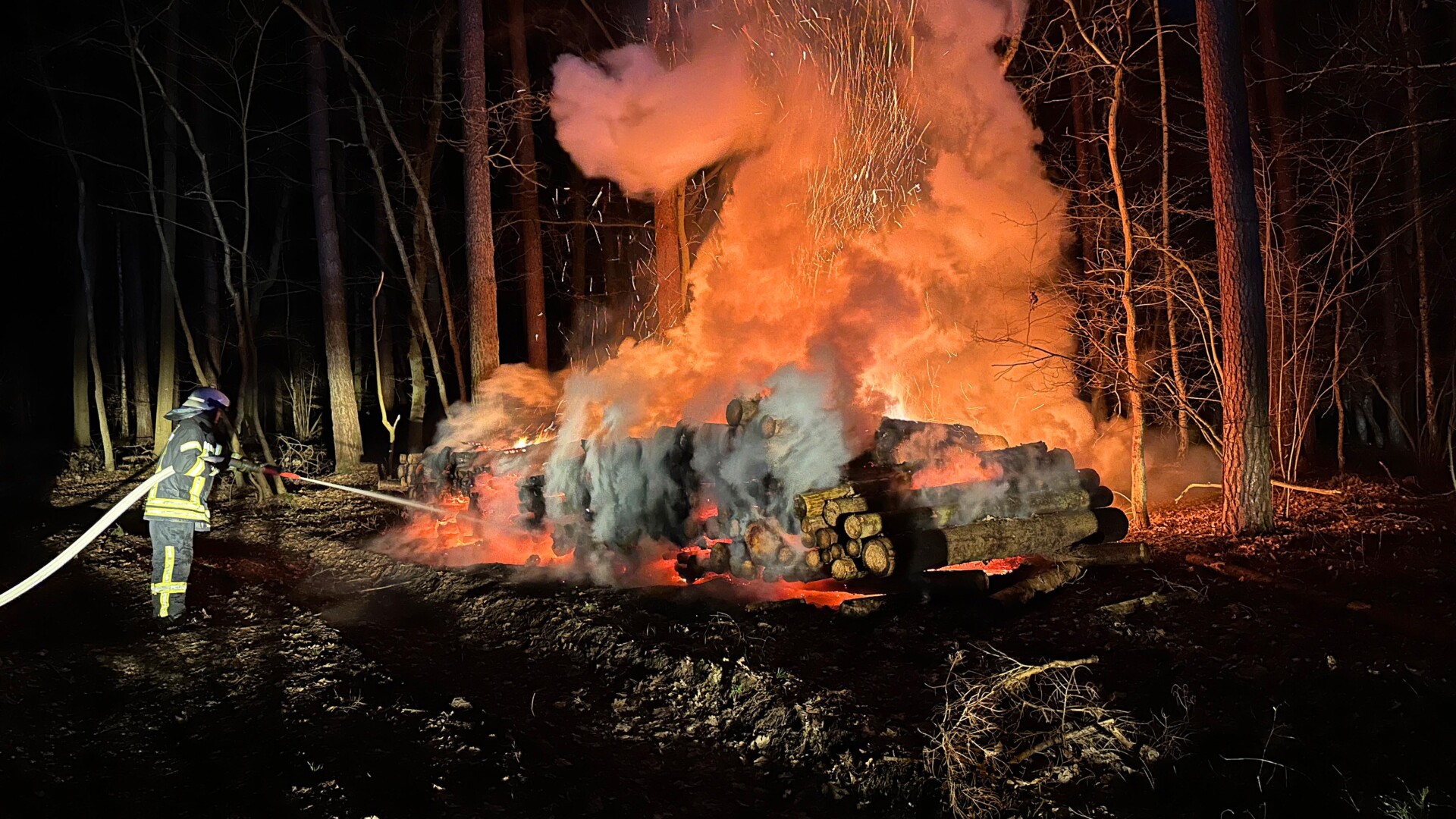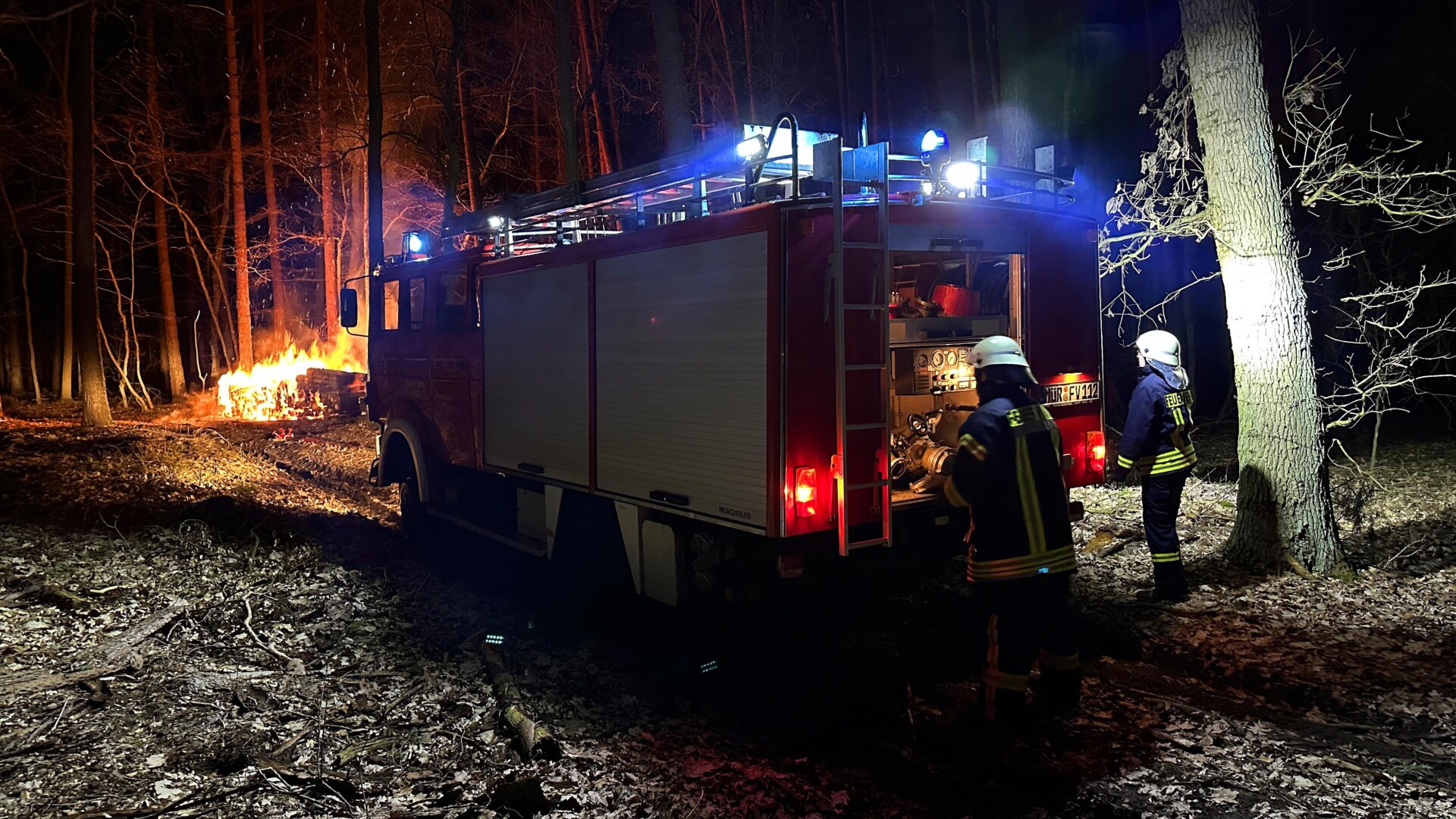 Kurz nach vier Uhr heute Morgen sind die Kameraden der Freiwilligen Feuerwehren aus Priborn, Südmüritz OT Vipperow und Melz zu einem Feuer in einem Waldstück bei Buchholz geeilt. Dort brannte rund 50 Meter von der Straße entfernt ein großer Holzhaufen. Die Feuerwehr richtete einen Pendelverkehr ein, um Löschwasser an die Einsatzstelle zu bekommen. Mehrere Tanklöschfahrzeuge waren nötig. Später wurde dann noch die Freiwillige Feuerwehr Rechlin nachgefordert. Mit rund 30 Einsatzkräften gelang es schließlich, den Holzhaufen abzulöschen. Die Höhe des entstandenen Sachschadens ist noch nicht bekannt. Die Polizei ermittelt wegen des Verdachts der vorsätzlichen Brandstiftung.