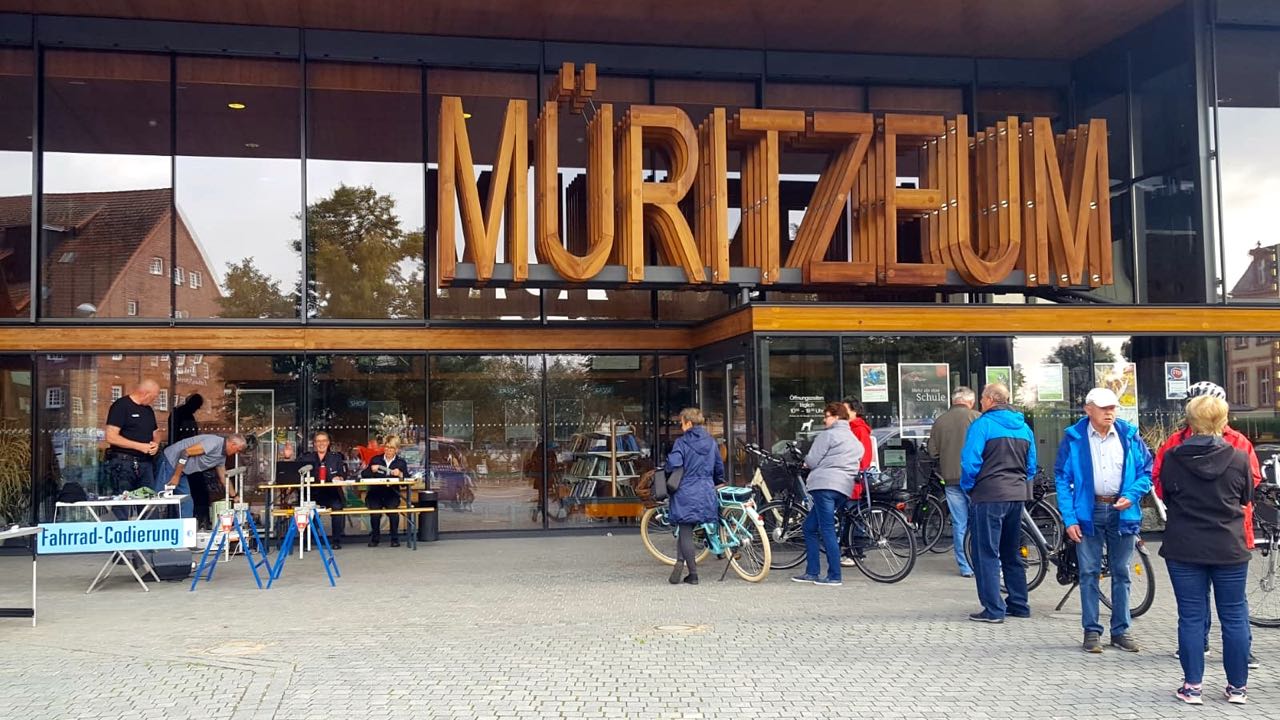 Diese Aktion scheint richtig gut anzukommen: Das Präventionsteam der Polizeiinspektion Neubrandenburg codiert heute von 10 bis 16 Uhr vor dem Müritzeum kostenlos Fahrräder. Schon vor Beginn bildete sich eine Schlange. Die Wartezeiten sind aber kurz.