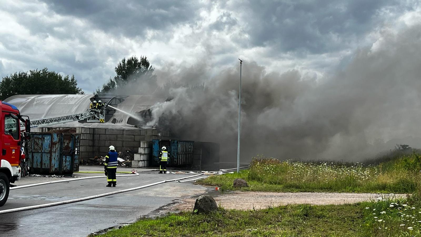 Riesige Rauchschwaden zogen heute gegen Mittag durch Friedland: Eine Lagerhalle stand in Flammen. Mehr als 100 Feuerwehrleute umliegender Wehren waren im Einsatz, um den Brand zu löschen. Verletzt wurde zum Glück niemand, nach ersten Ermittlungen geht die Polizei von einem technischen Defekt aus. In der 30 x 10 Meter großen Halle lagerte Elektroschrott. Der entstandene Schaden wird vorerst auf rund 50 000 Euro geschätzt.