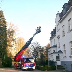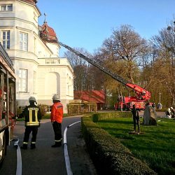 Kurz vor halb sieben wurden die Kameraden mehrerer Feuerwehren heute von ihren Funkmeldern geweckt – Feuerübung im Internatgymnasium Schloss Torgelow am See stand auf dem Plan.Auch die Warener Kameraden waren dabei und unter anderem mit der neuen Drehleiter vor Ort.