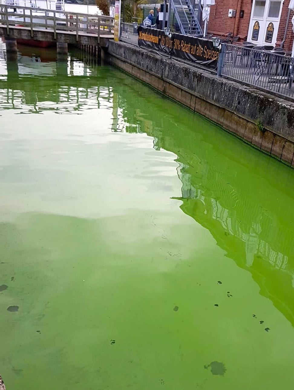 Doch nach Auskunft von Behördenmitarbeitern handelt es sich hier weder um Farbe, noch um einen anderen chemischen Stoff, sondern vermutlich um eine Algenart.