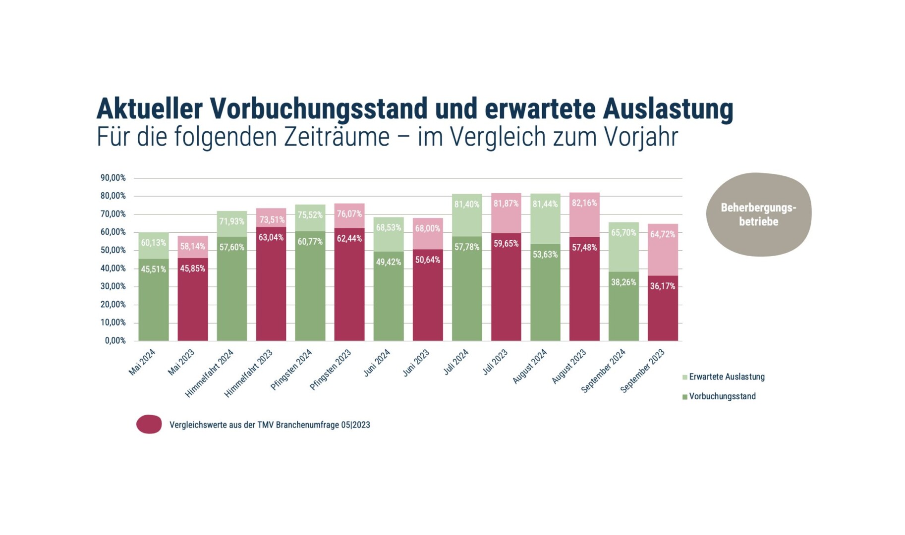 Die Preise bei den touristischen Unternehmen sind im Vergleich zum Vorjahreszeitraum um acht Prozent und damit geringer als im Vorjahr gestiegen. 2023 lag der Vergleichswert noch bei 12 Prozent. Parallel dazu ist das wahrgenommene Ausgabeverhalten der Gäste gesunken: So gaben mehr als zwei von drei Unternehmen (71 Prozent) an, dass ihre Gäste weniger oder sogar wesentlich weniger ausgaben als im Vorjahreszeitraum; 25 Prozent bemerkten ein ähnliches Ausgabeverhalten wie im letzten Jahr; vier Prozent berichteten über ausgabefreudigere Gäste.