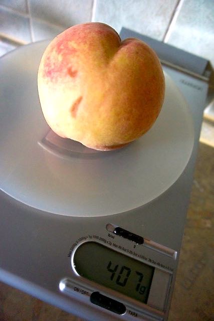 Denn dort wurde dieses Prachtexemplar von Pfirsich geerntet.