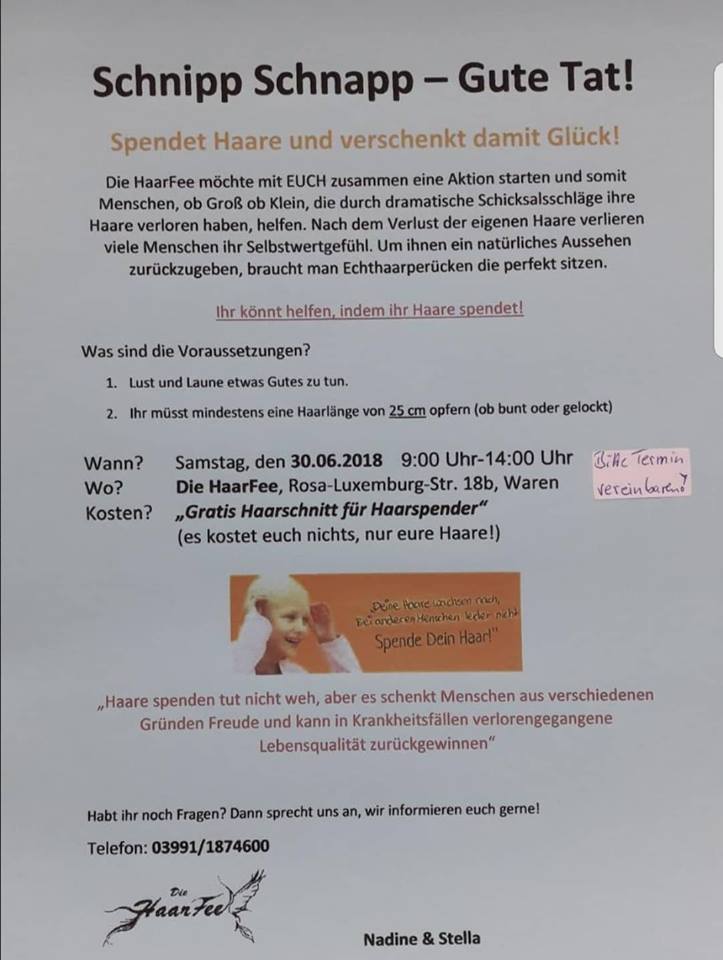 Bitte diesen Termin vormerken und am besten bis dahin keine Haare mehr schneiden lassen.