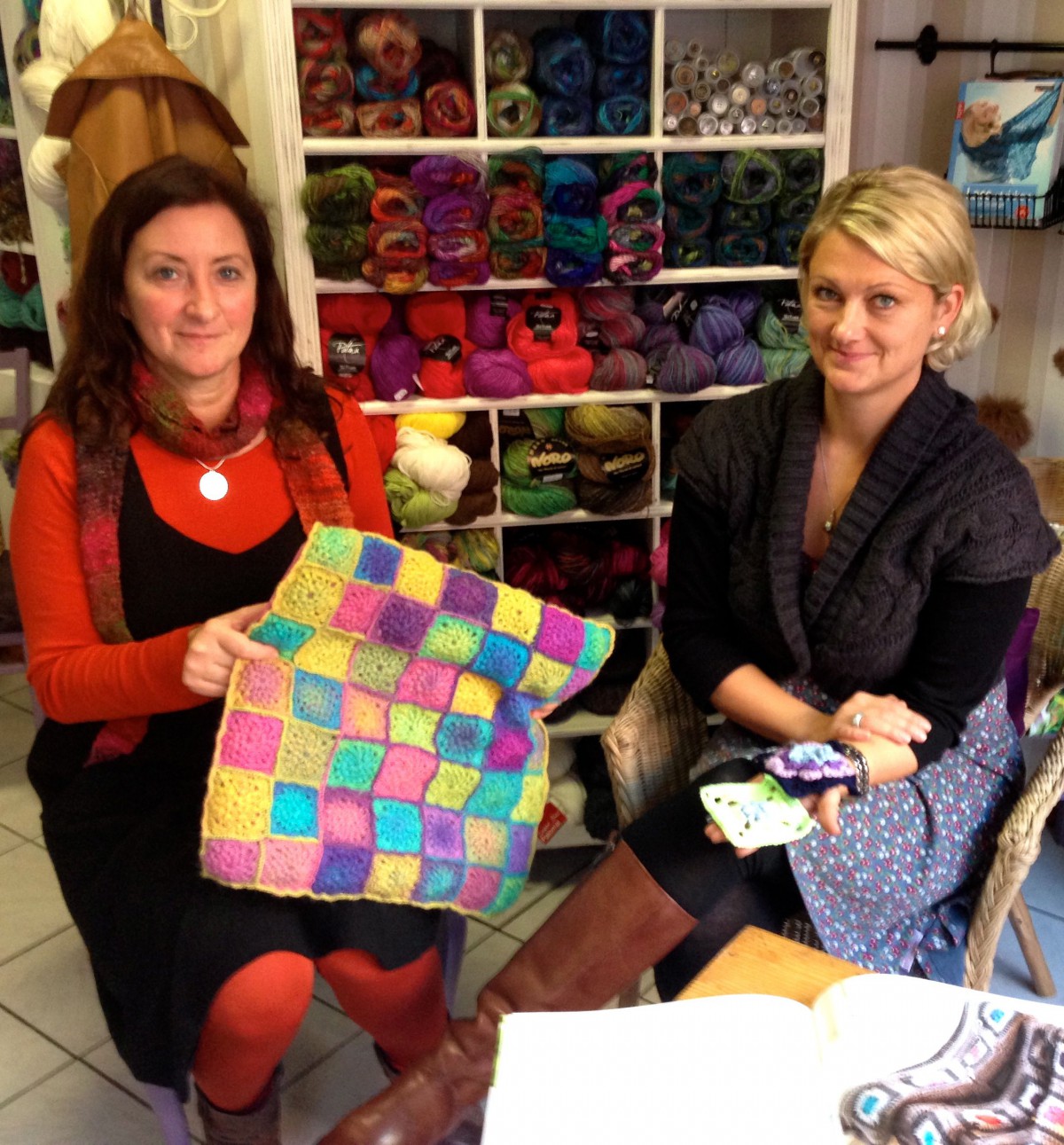 Silke und Jacki hoffen auf ganz, ganz viele Quadrate, die ihnen für die Kuscheldecke gehäkelt werden.