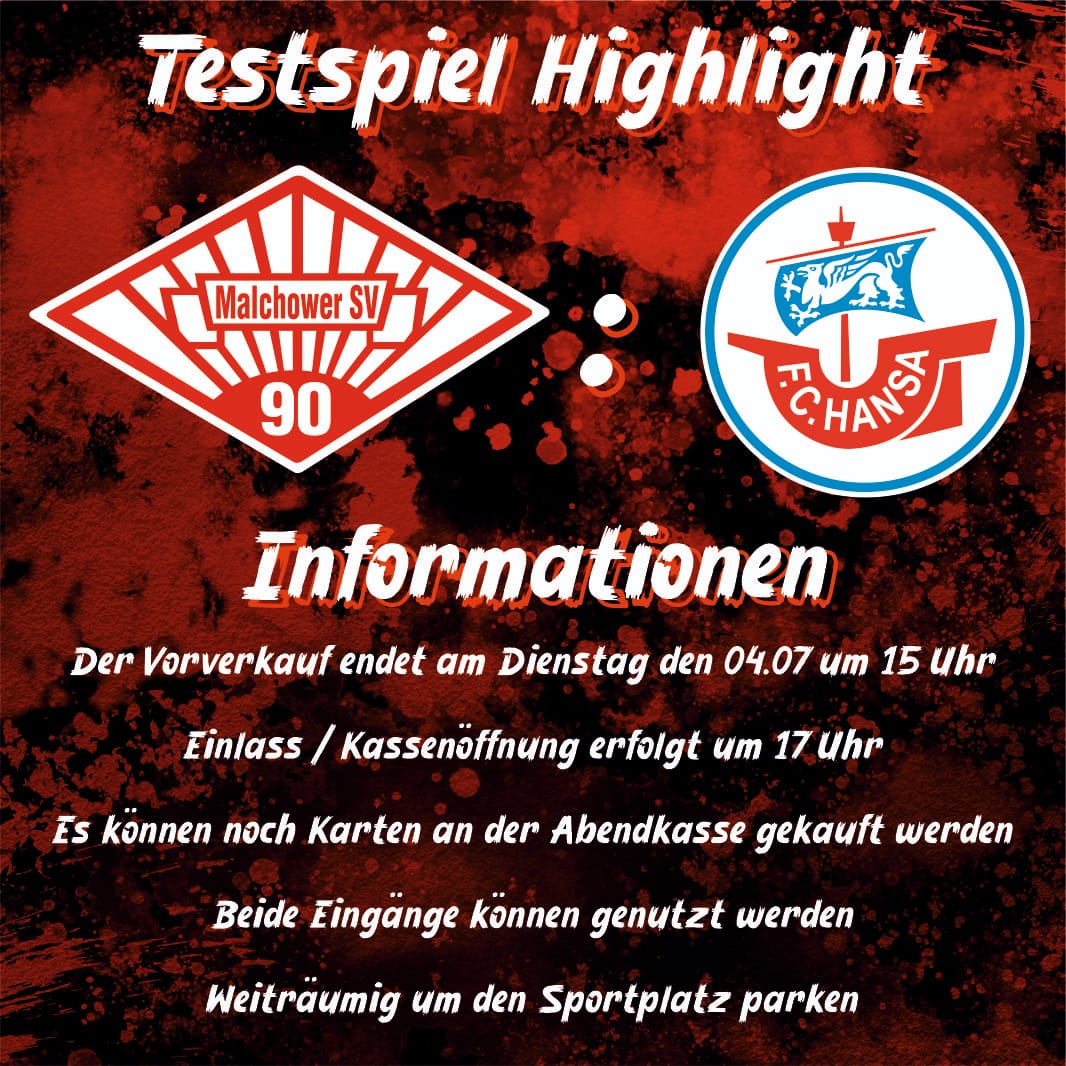Wichtige Info für alle, die sich das Testspiel Malchower SV gegen Hansa Rostock am kommenden Mittwoch, 5. Juli nicht entgehen lassen wollen: