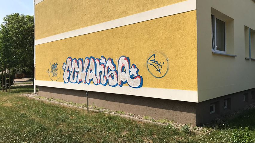 Narrenhände… In der Nacht von Dienstag zu Mittwoch haben bislang ubekannte Täter zwei Hauswände in der Röbeler Chaussee mit Hansa-Motiven beschmiert.