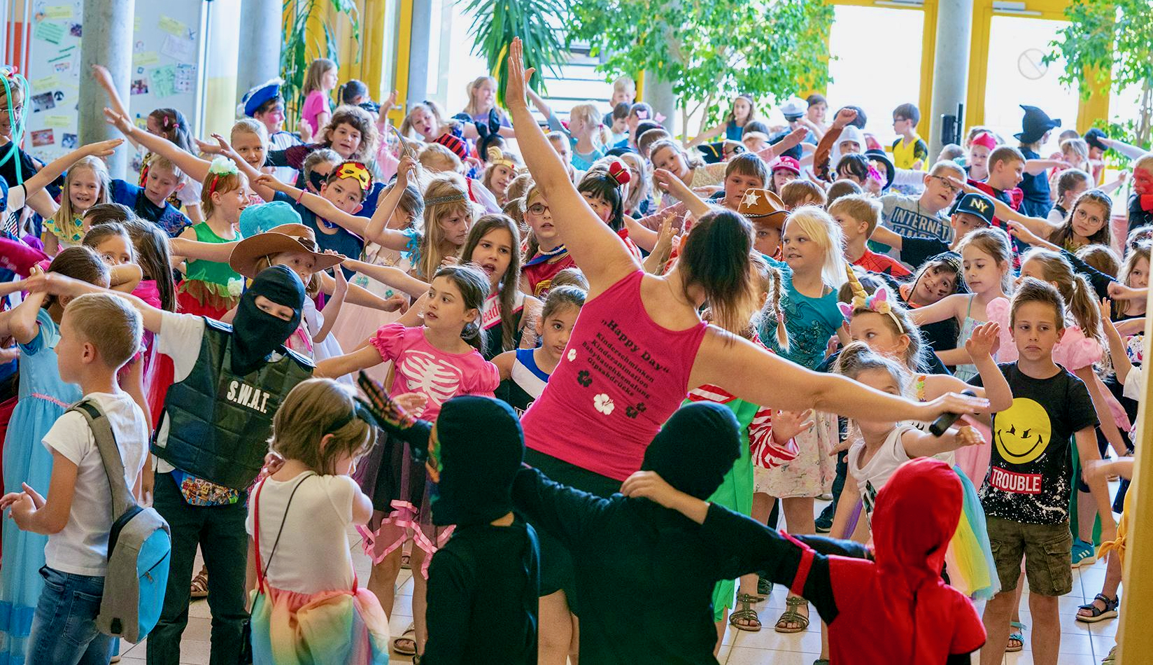 An der Grundschule Am Papenberg gab’s in dieser letzten Schulwoche das“ Happy Day Sommerfest“. Da dieses als Ersatzveranstaltung für das Corona bedingt ausgefallene Faschingsfest geplant wurde, waren Kostüme erwünscht. So kamen die Kinder mit den schönsten Verkleidungen in die Schule.
