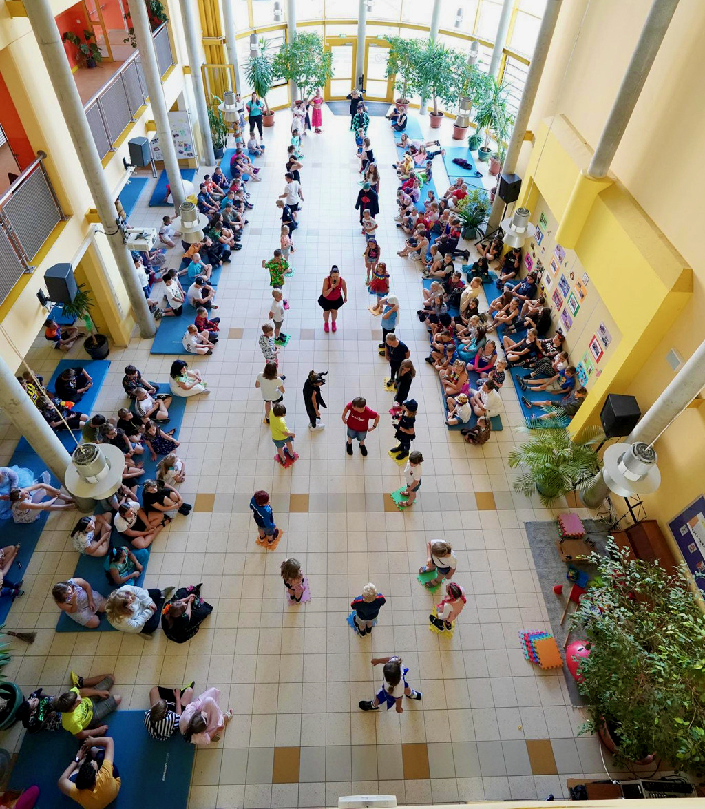 Der Tag begann für alle mit dem Programm „Happy Day“ in der Pausenhalle. Dort wurde gemeinsam getanzt, gelacht und gespielt. Doch damit war der Tag noch lange nicht beendet. Nach dem Programm hatten alle Kinder die Möglichkeit, verschiedene Stationen im Schulgebäude und auf dem Schulhof zu besuchen. So konnten sie unter anderem ihre Talente beim Fußball-Zielschießen zeigen, sich schminken lassen oder am Glücksrad drehen. Zeitgleich veranstalteten die Schüler der vierten Klassen einen Flohmarkt.