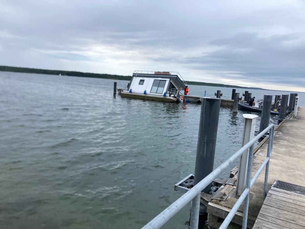 das ist ja nun des öfteren schon vorgekommen das Hausboote in Schwierigkeiten geraten sind, Hausboote sind halt nicht für Seen geeignet da sie Wellen nicht ausgleichen können wie ein normales Boot