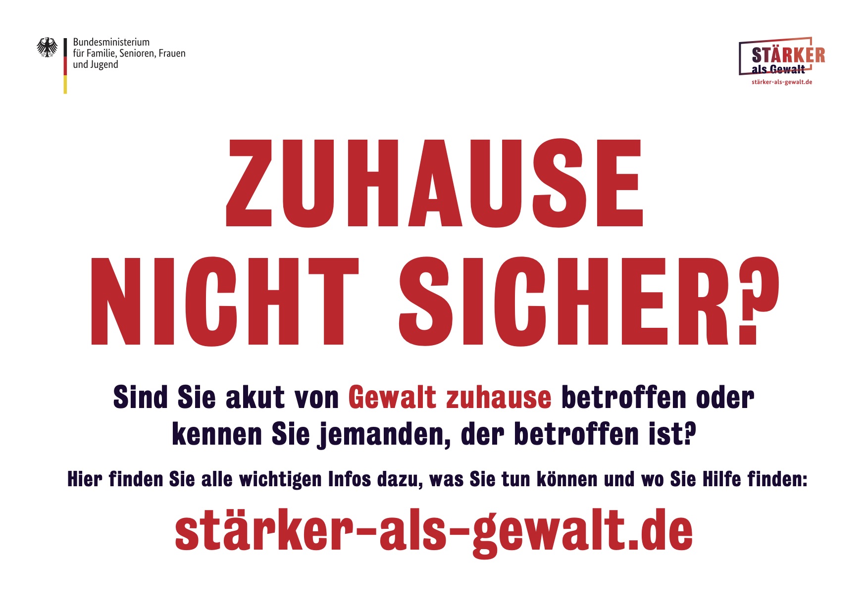 „Im Zentrum steht dabei das Hilfetelefon ‚Gewalt gegen Frauen‘. Unter der bundeseinheitlichen Nummer 08000 116 016 sind telefonische Beratungen jeden Tag rund um die Uhr in Deutsch und 17 Fremdsprachen möglich“, betont Drese. Weiterführende Informationen, Hilfeangebote sowie ausdruckbare Poster-Vorlagen und Infoblätter gibt es im Internet unter www.staerker-als-gewalt.de.