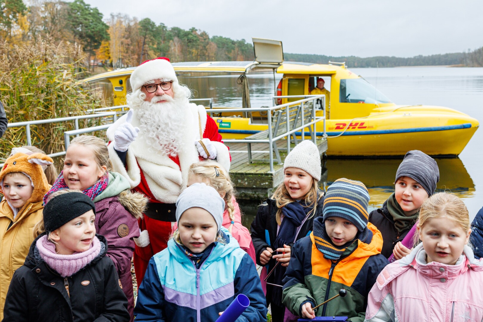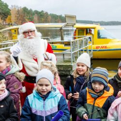 Der Weihnachtsmann hat sich vom Nordpol auf den Weg nach Brandenburg gemacht und ist gestern Vormittag in Himmelpfort eingetroffen. Das letzte Stück seiner Reise legte er im 40. Jubiläumsjahr per DHL-Solarschiff zurück. Mit diesem gelben Wasserfahrzeug befördert DHL normalerweise in Berlin Pakete leise und umweltfreundlich auf der Spree. Das Solarschiff ist mit Unterstützung der Reederei Solarwaterworld aus der Hauptstadt nach Nordbrandenburg geschippert, um den Weihnachtsmann abzuholen. In Himmelpfort wurde der bärtige Alte freudig von Kindern der Grundschule aus dem Nachbarort Bredereiche begrüßt. Bis Heiligabend wird er mit seinen fleißigen Weihnachtsengeln wieder Kinderbriefe aus Deutschland und aller Welt lesen und beantworten. Über das Briefzentrum in Hennigsdorf bei Berlin werden die Antwortbriefe an die Kinder in aller Welt versandt.