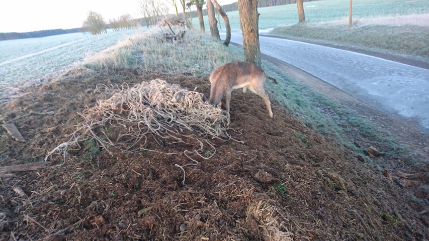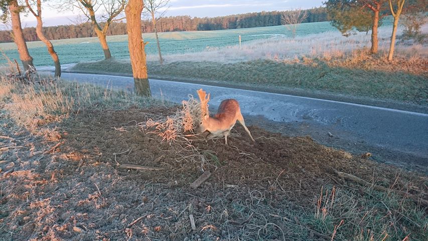Diese Bilder machen wütend und traurig zugleich: Weil im Straßengraben bei Mirow irgendwelche Strippen – wahrscheinlich achtlos weggeworfen – lagen, hätte dieser Hirsch fast sein Leben gelassen.Mit dem Geweih in dem Müll verfangen, versuchte er verzweifelt, wieder los zu kommen. Wie lange, weiß niemand. Alleine hatte der Hirsch keine Chance.
