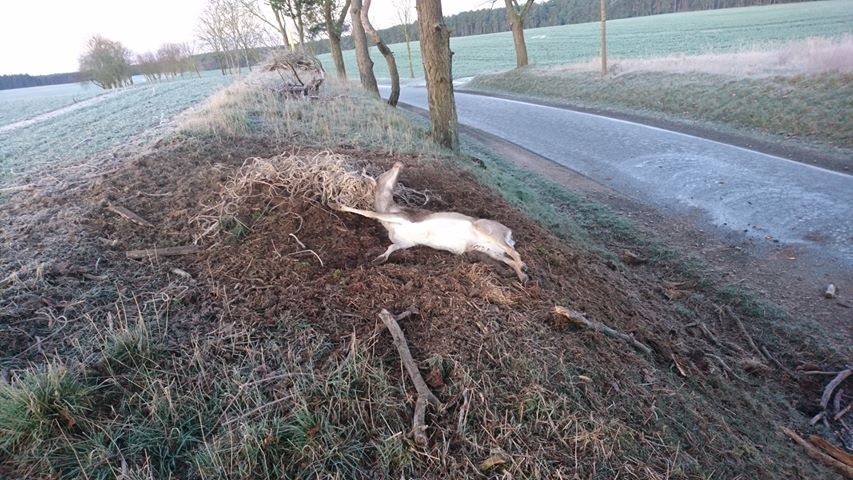 Entdeckt wurde er Dienstag früh an der Straße bei Mirow, ein aufmerksame Autofahrer holte Hilfe, der Revierförster konnte das Tier schließlich befreien.