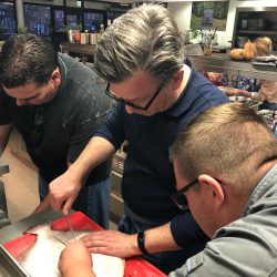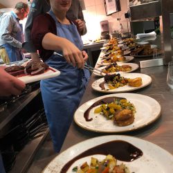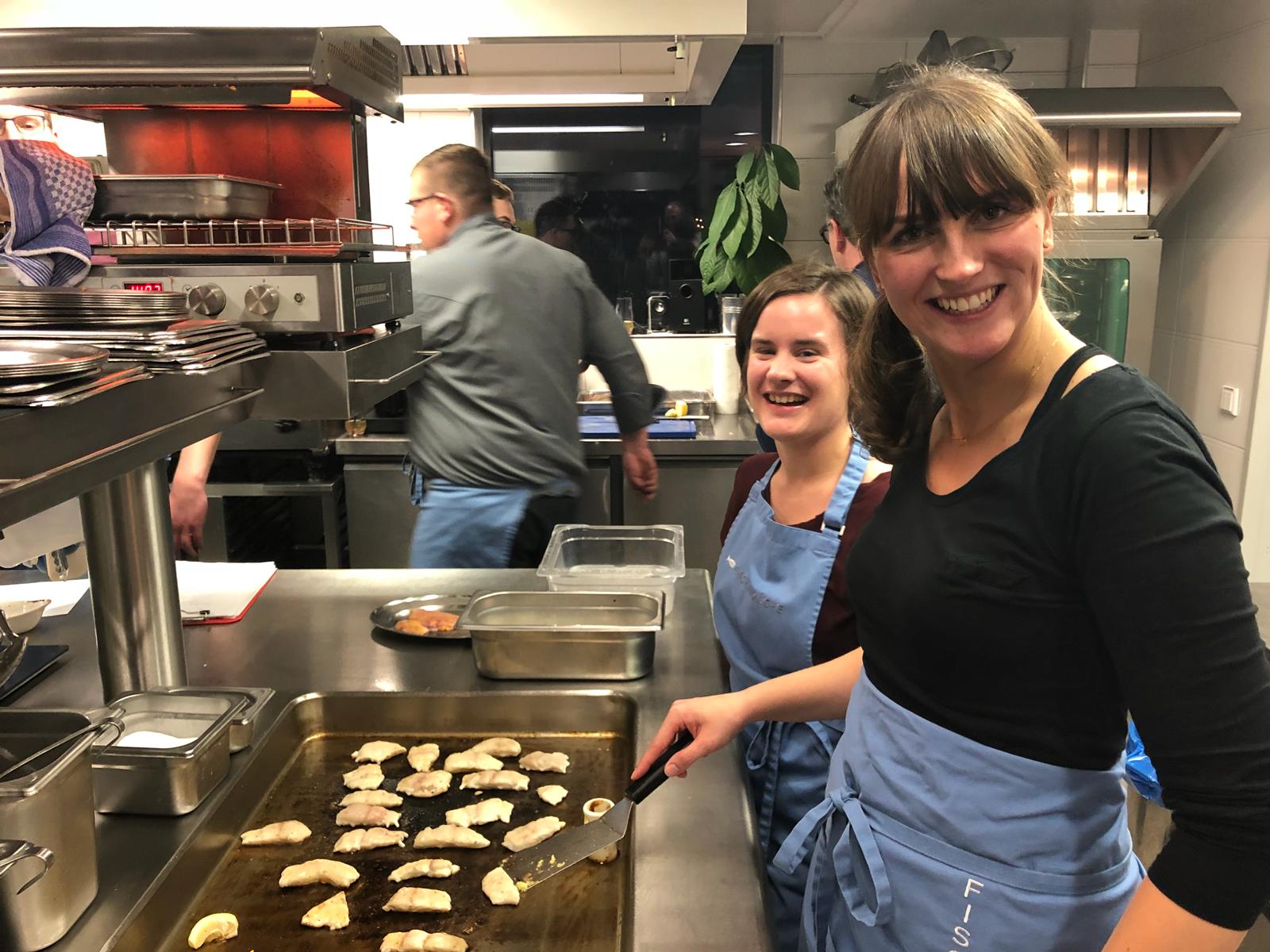 Das Team erkochte sich erfolgreich ein bodenständiges, wenngleich feines und raffiniertes Drei-Gänge-Menü, angefangen vom Kürbissüppchen bis hin zum Baumkuchendessert. Dazwischen natürlich butterweich der Fisch und das Wild. Dass es gemundet hat, wird dem Leser hiermit versichert.