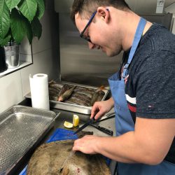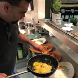 Dem Chef Cuisinier war es wichtig, den Kursteilnehmern zu vermitteln, wie die natürlichen Aromen der einzelnen für sich bereits geschmackvollen Produkte nicht durch übermäßige Würze übertüncht, sondern unterstützt werden. Bereits eine Wissenschaft für sich.