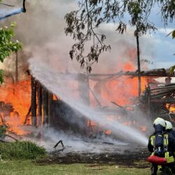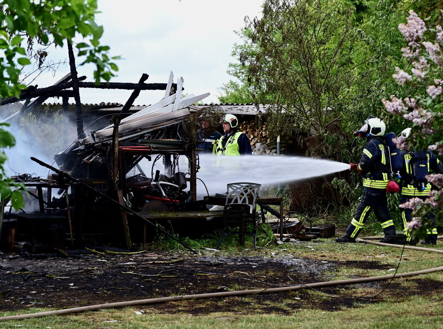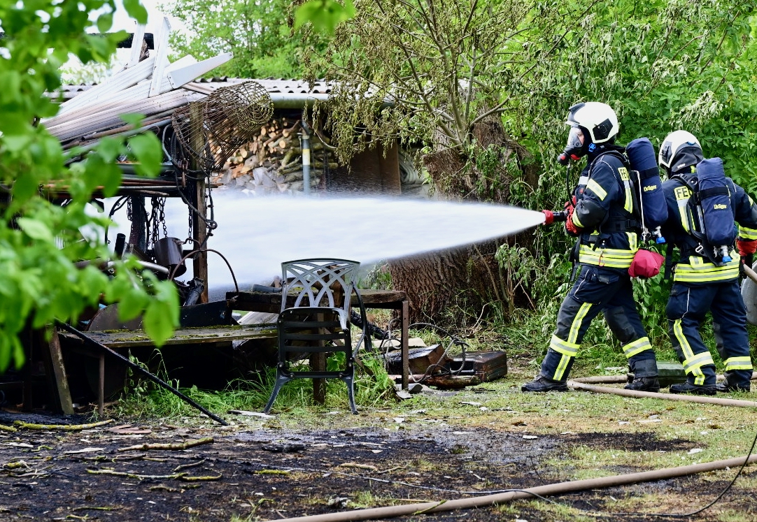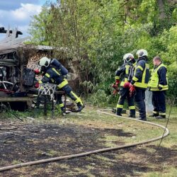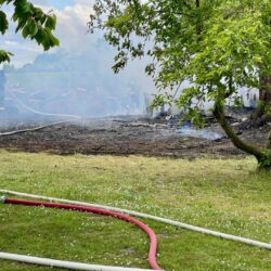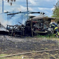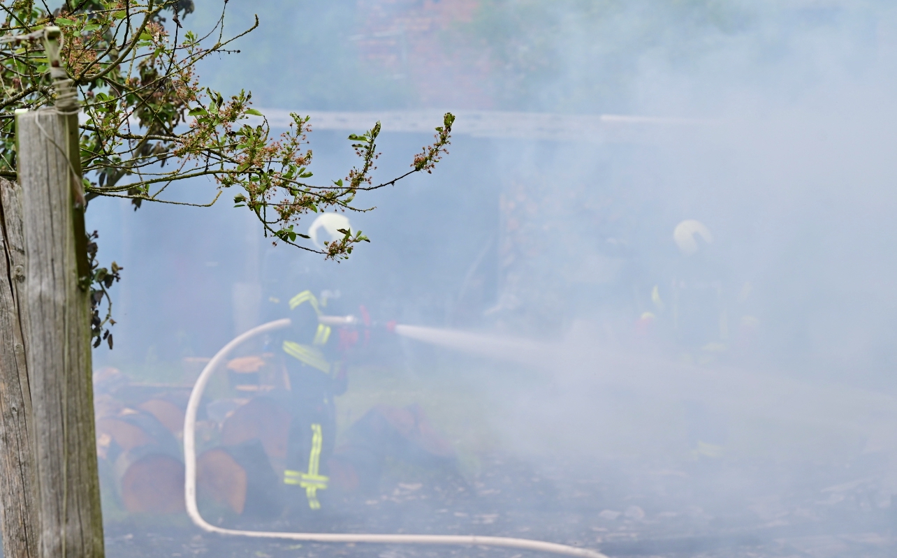 Da war nichts mehr zu retten: In Lehsten bei Möllenhagen ist heute Nachmittag auf einem Privatgrundstück eine Art Hobby-Werkstatt komplett abgebrannt. Nach derzeitiger Kenntnis ist von einem technischen Defekt auszugehen. Feuerwehr und Polizei sind im Einsatz. Die Durchfahrtsstraße ist daher aktuell noch gesperrt. Neben der Werkstatt auf dem privaten Gelände, die samt Inhalten ausbrannte, war auch ein Baum vom Feuer betroffen. Die Polizei schätzt den Schaden auf etwa 30.000 Euro. Mehrere Feuerwehren der Region sind alarmiert worden. Die Windrichtung war zum Glück so günstig, dass nebenstehende Gebäude nicht in Mitleidenschaft gezogen wurden. Verletzt wurde nach aktuellem Stand niemand.