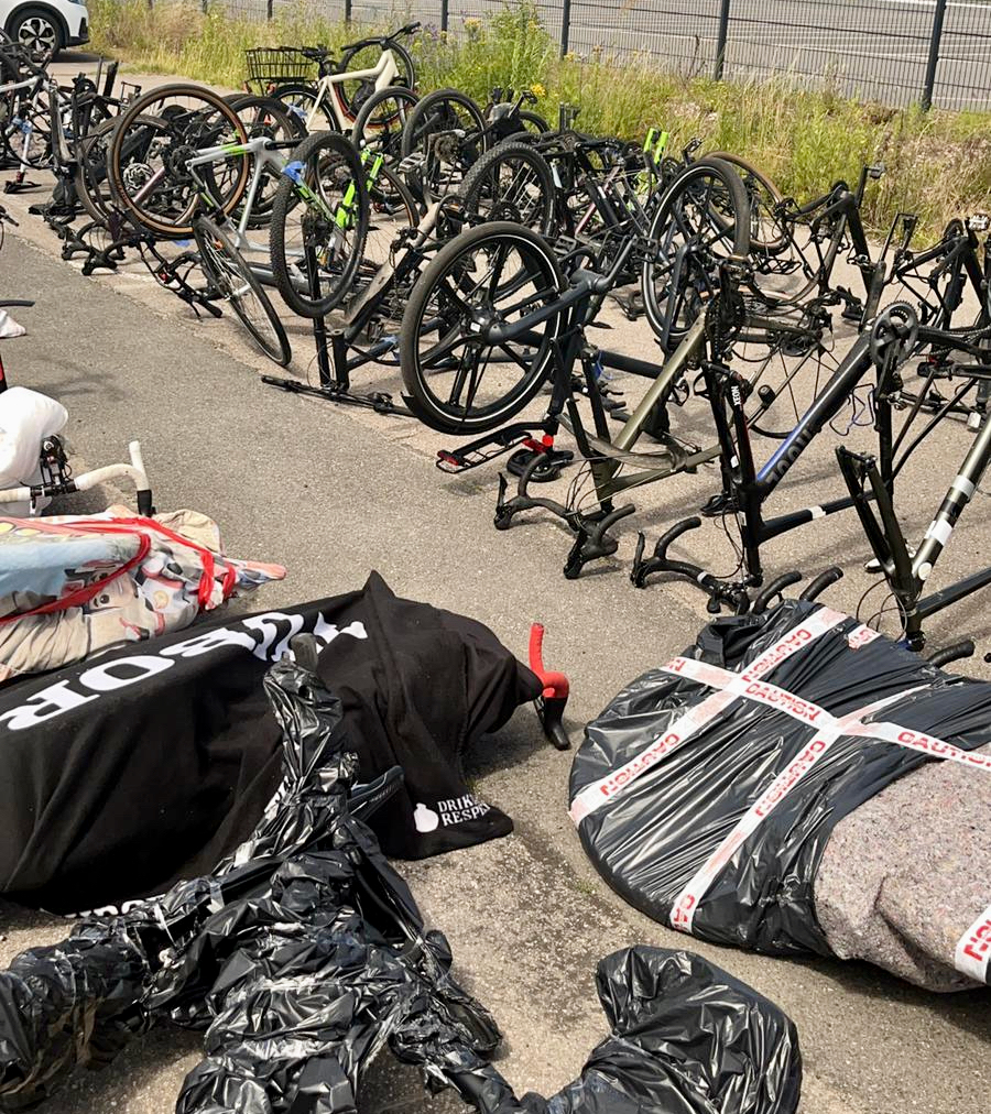 Das hat sich gelohnt: Bei einer Kontrolle eines rumänischen Reisebusses mit Anhänger am Sonntagvormittag im Überseehafen Rostock haben Bundespolizisten hochwertige Fahrräder sowie Werkzeuge gefunden. Diese lagen unter Decken versteckt und waren teilweise noch mit Schlössern versehen bzw. wiesen aufgetrennte Schlösser auf. Insgesamt befanden sich 62 hochwertige Carbonräder, E-Bikes, zwei E-Roller sowie Müllsäcke, in denen Werkzeuge der Marken „Makita“, „Hilti“, „Milwaukee“ und „Stiehl“ verpackt waren, in dem Bus und dem Anhänger. Gesamtwert: über 100 000 Euro. Eigentumsnachweise für die aufgefundenen Gegenstände konnten durch den rumänischen Fahrer des Busses nicht erbracht werden. Der 18-Jährige gab in seiner Vernehmung an, die Fahrräder sowie das Werkzeug in der Nacht zum 16. Juni am Busbahnhof in Kopenhagen verladen zu haben. Die Gegenstände sollten nach Rumänien gebracht werden. Zur Ermittlung der Eigentumsverhältnisse wurden die Fahrräder, E-Roller und Werkzeuge sichergestellt. Gegen den 18-jährigen Mann wurde ein Ermittlungsverfahren wegen Hehlerei eingeleitet.